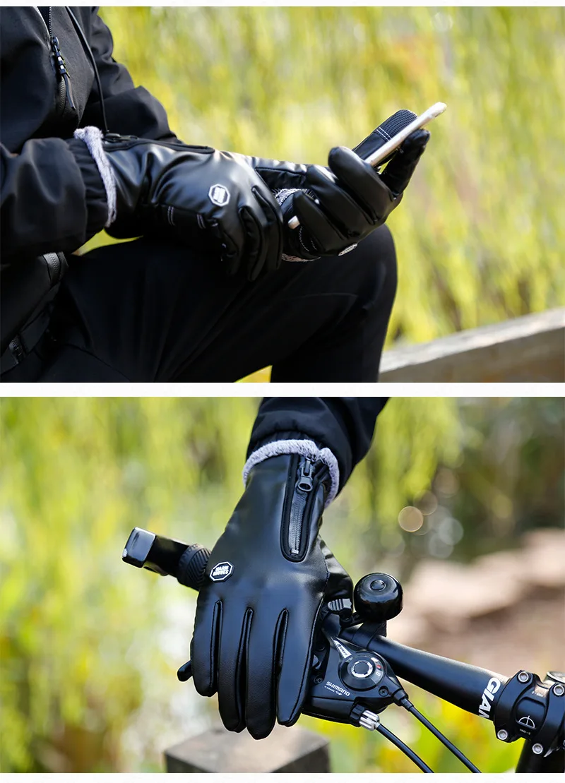 Зимние мужские и женские велосипедные перчатки, кожаные перчатки с пальцами, водонепроницаемые, ветрозащитные, противоскользящие, для работы с сенсорным экраном, для лыж, спорта на открытом воздухе