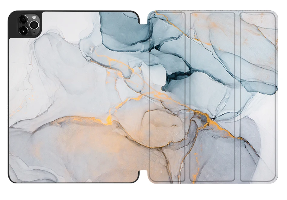 [Трехстворчатая подставка]:Встроенные магниты, складываются в подставку. Трехстворчатая передняя крышка с двумя стоящими позициями для комфортного ввода клавиатуры и просмотра фильмов с углом обзора, который отличается от трехкратного.