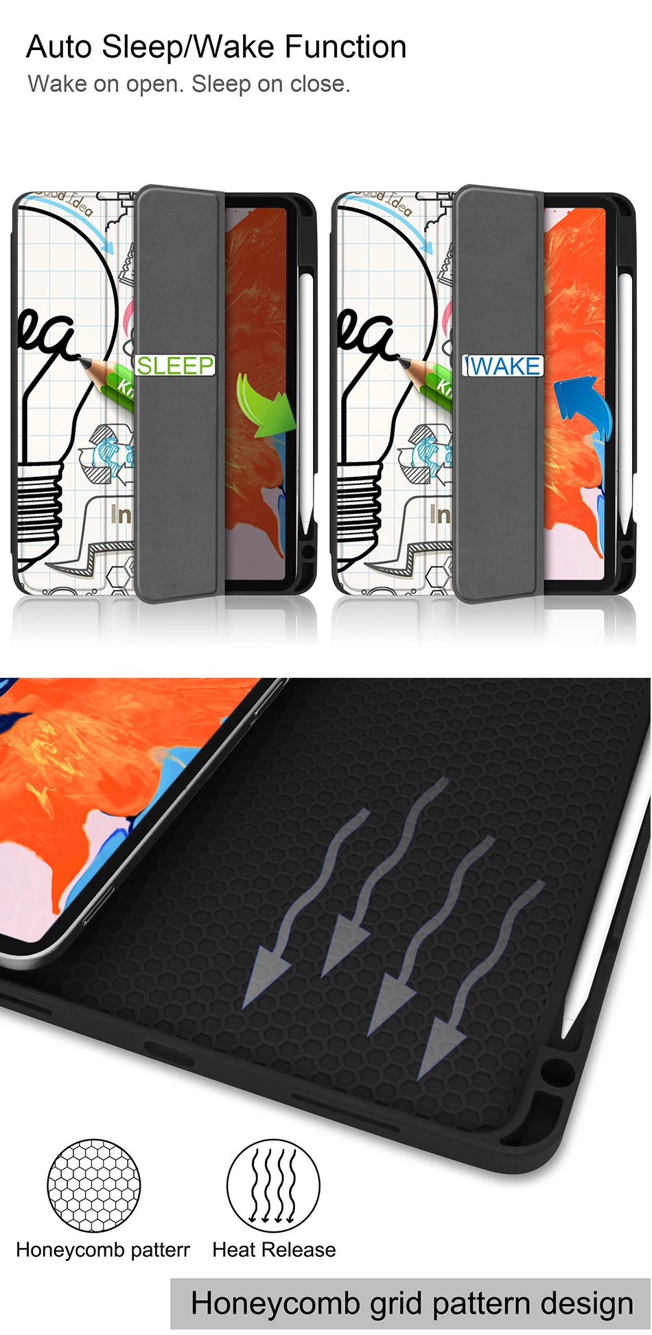 [Автоматический Режим сна/пробуждения]:Магнитная функция автоматического сна/пробуждения работает плавно и плавно, чтобы помочь продлить срок службы батареи вашего планшета.