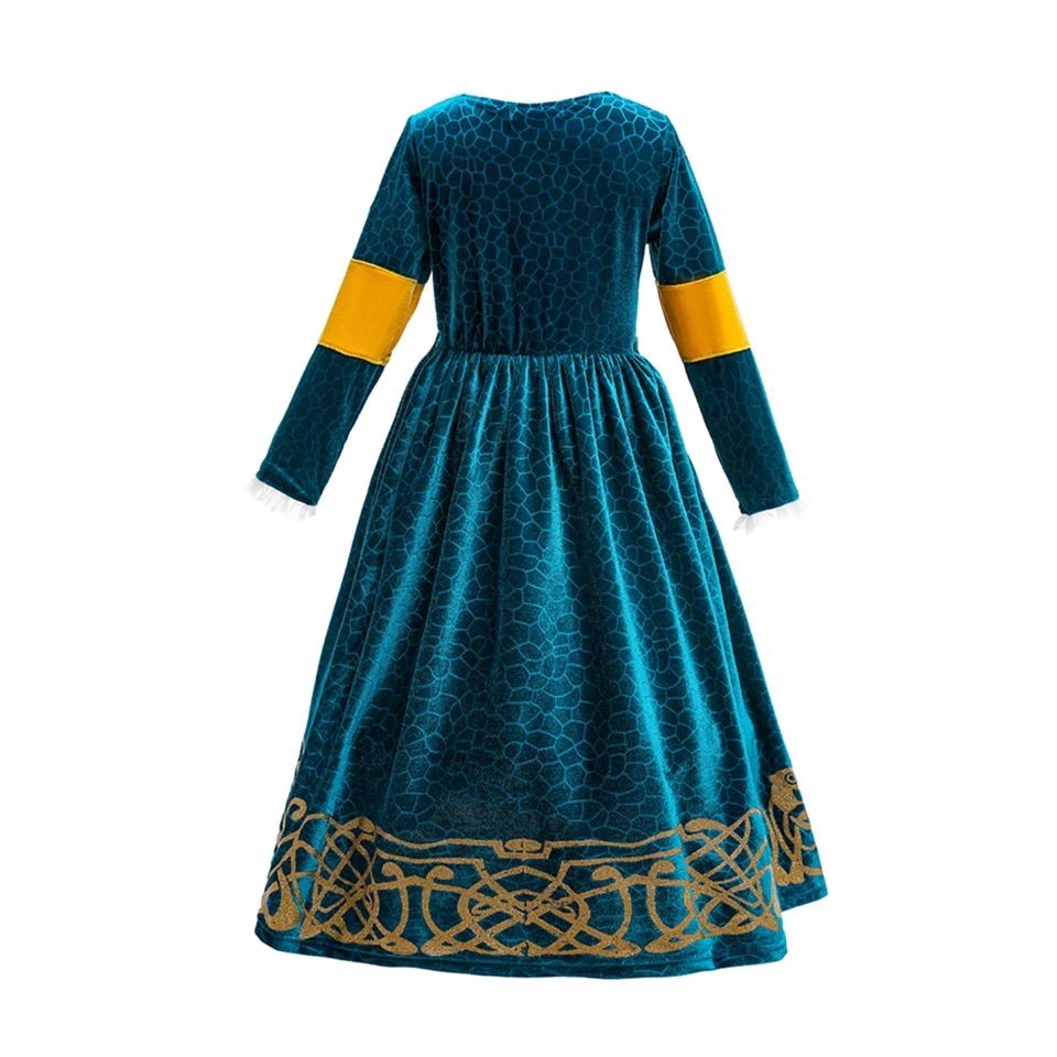Новинка, платье принцессы Мериды из мультфильма для девочек, костюм Хэллоуина для Хэллоуина, костюм принцессы храбрости, Детская винтажная одежда из зеленого бархата с длинным рукавом