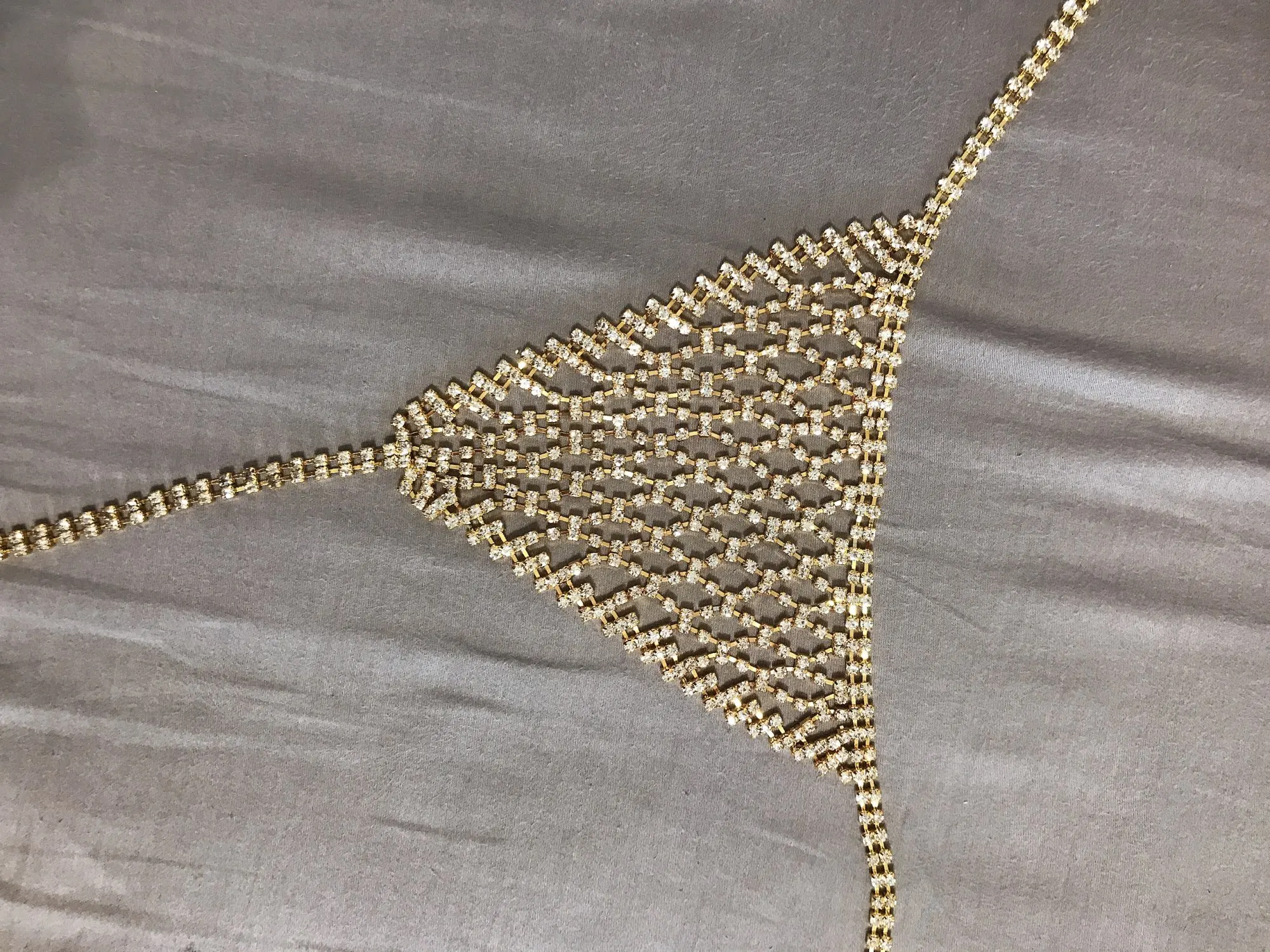 Бюстгальтер женский с цепочкой, роскошный комплект бикини с кристаллами, пикантное нижнее белье, стринги, ювелирные изделия, аксессуары