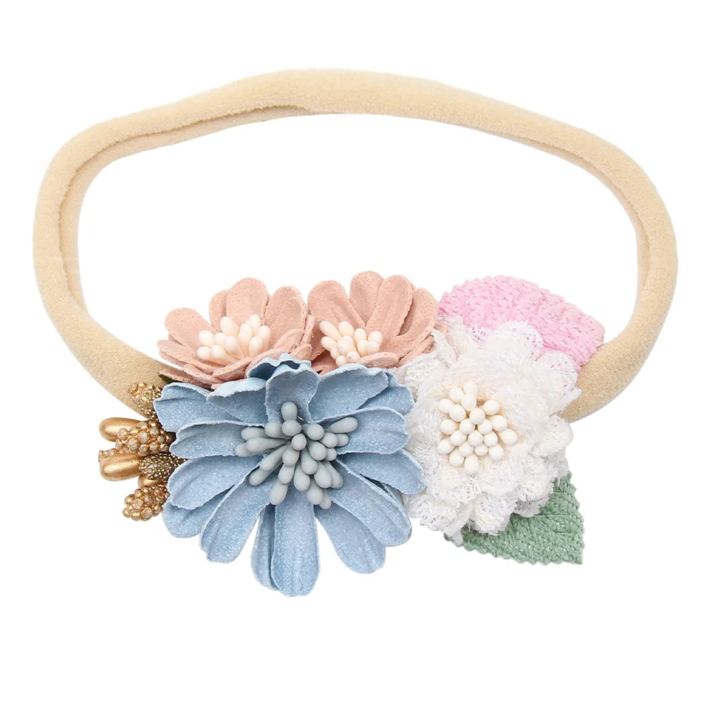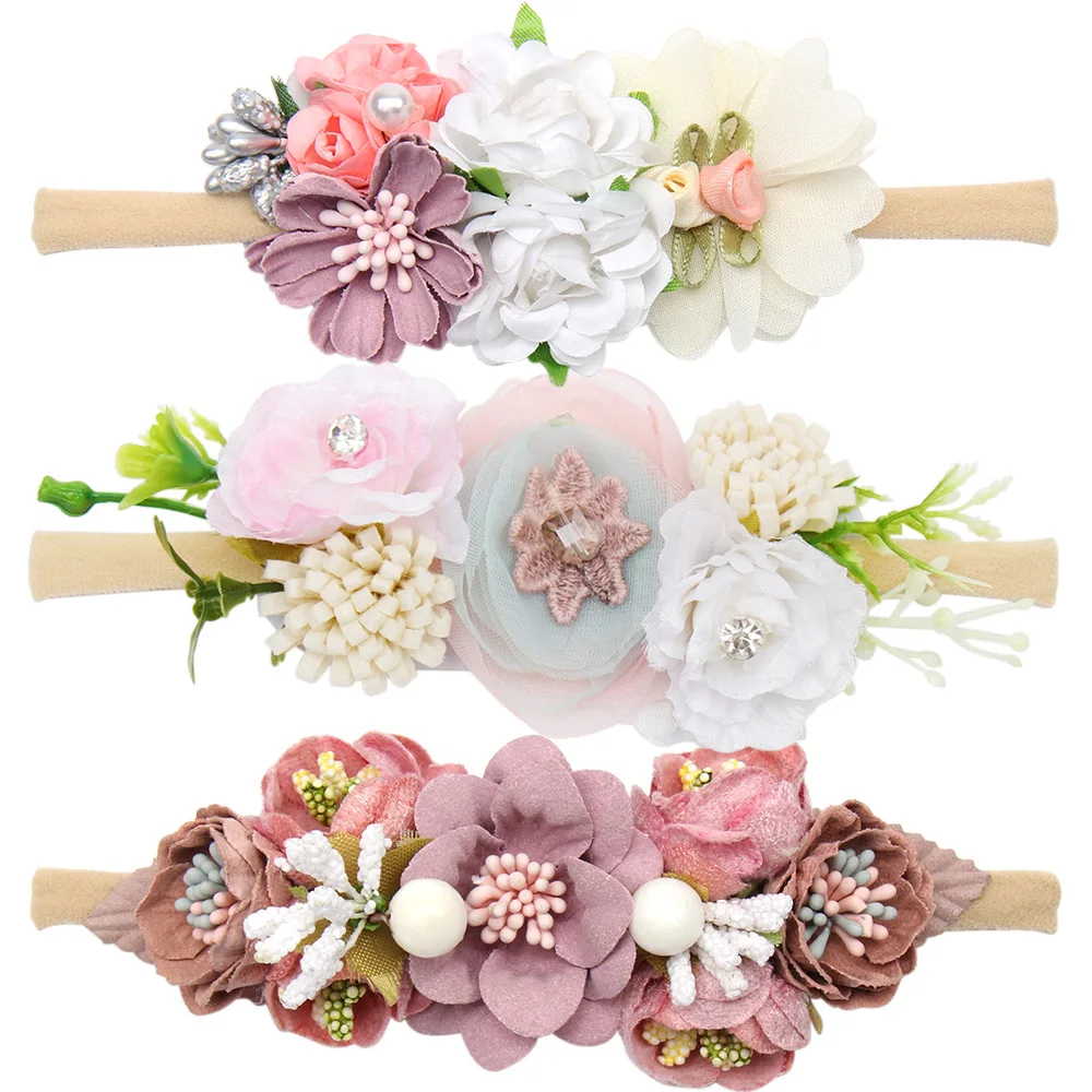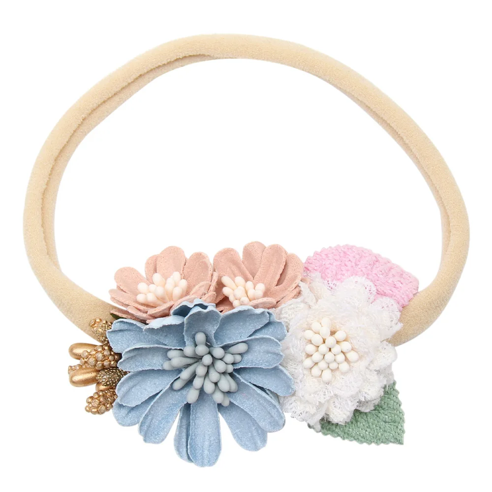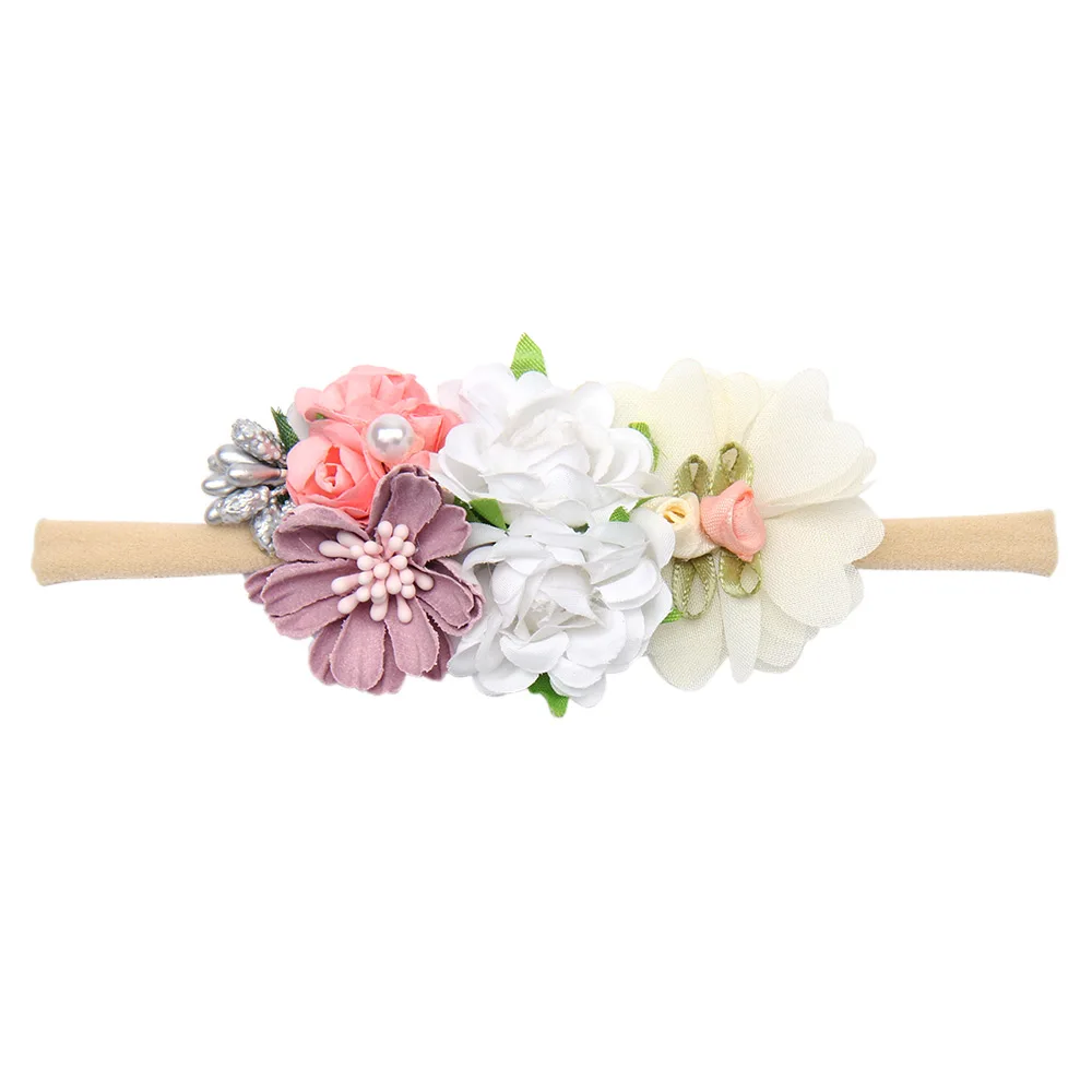 Повязка на голову для маленьких девочек ручной работы, жемчужный цветок, нейлоновые эластичные повязки для волос для новорожденных, Детские аксессуары повязка на голову