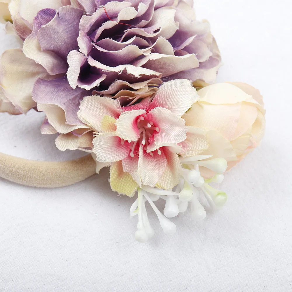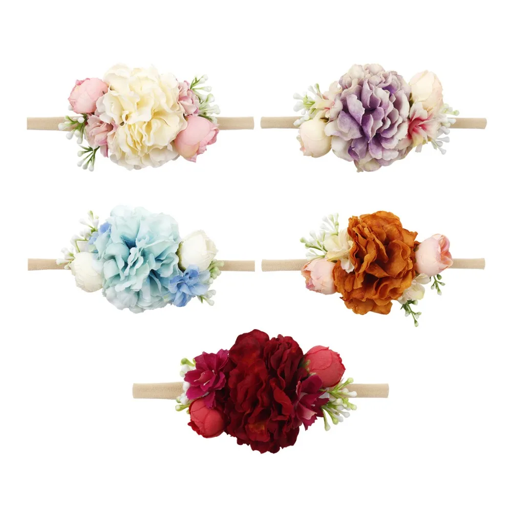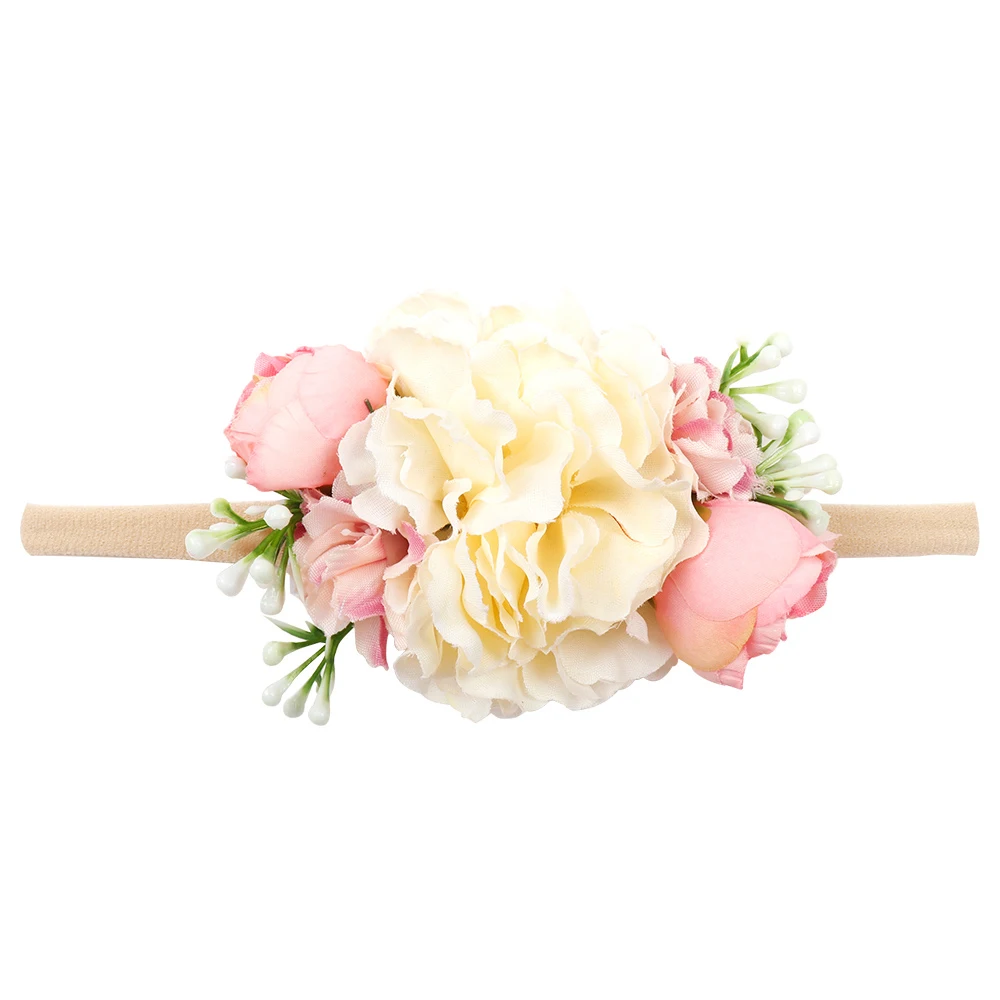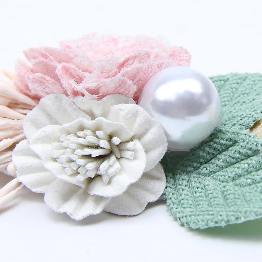 Повязка на голову для маленьких девочек ручной работы, жемчужный цветок, нейлоновые эластичные повязки для волос для новорожденных, Детские аксессуары повязка на голову