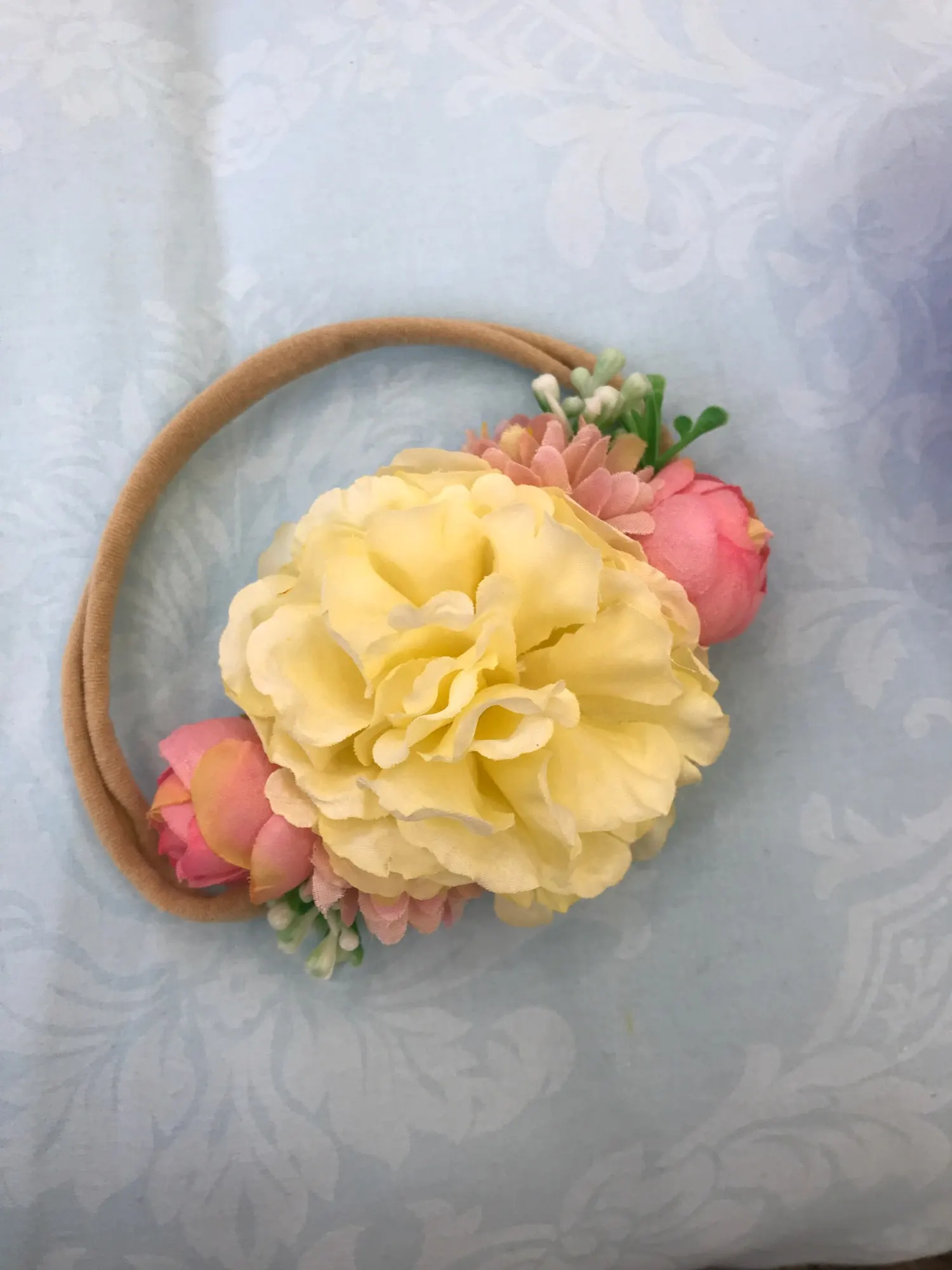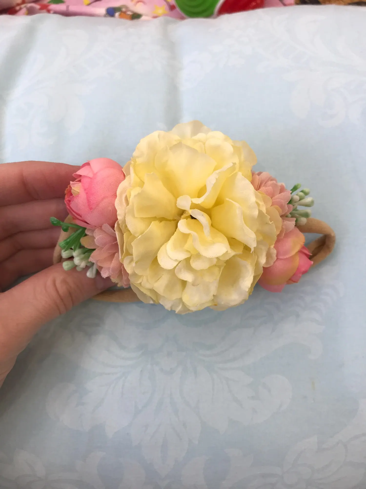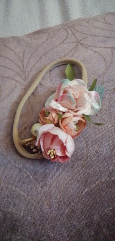 Красивые цветы, но надо понимать, что на маленькой голове новорожденного смотрится не очень гормонично. Предположу, что украшение на девочку от 1 года.