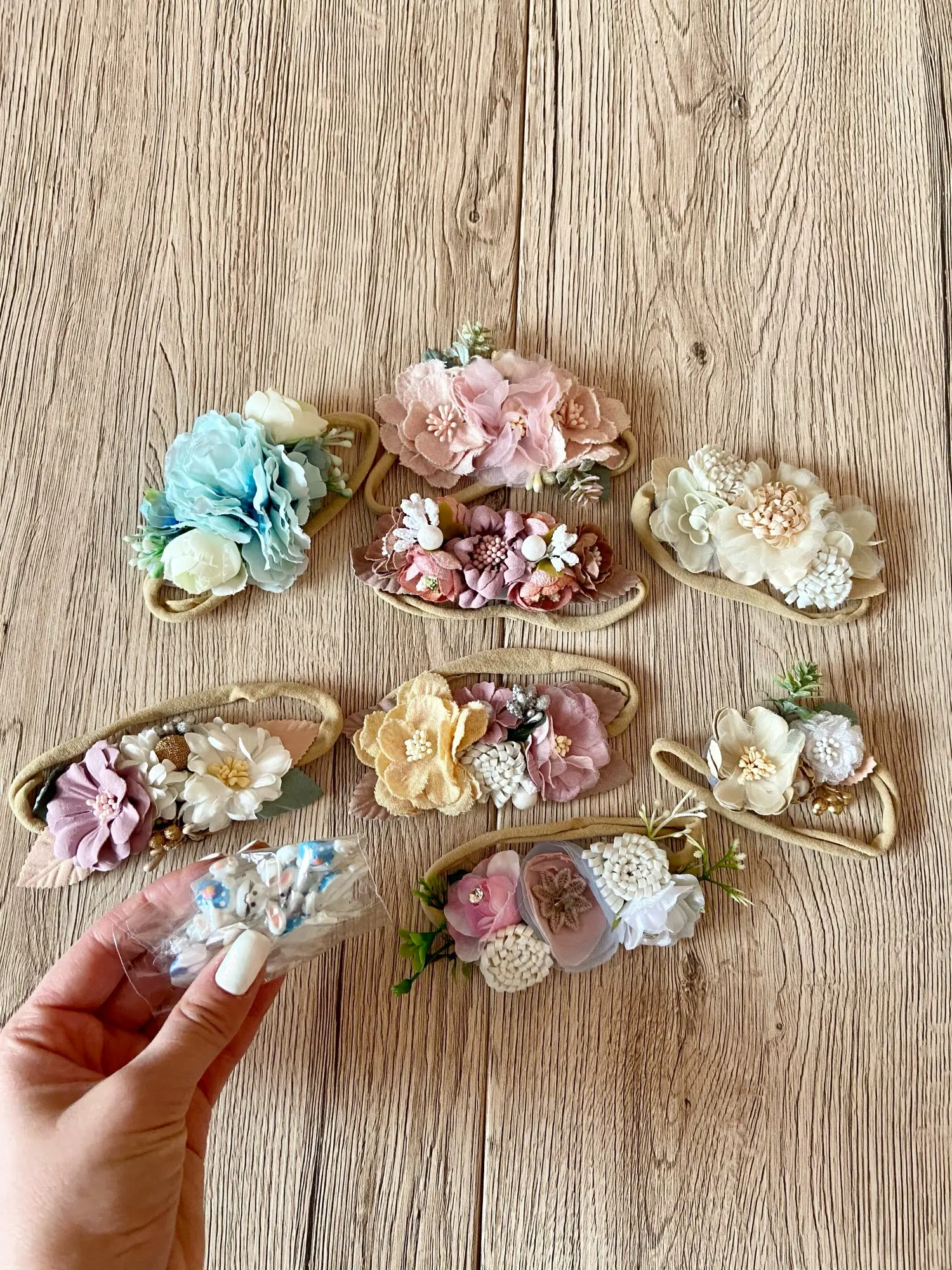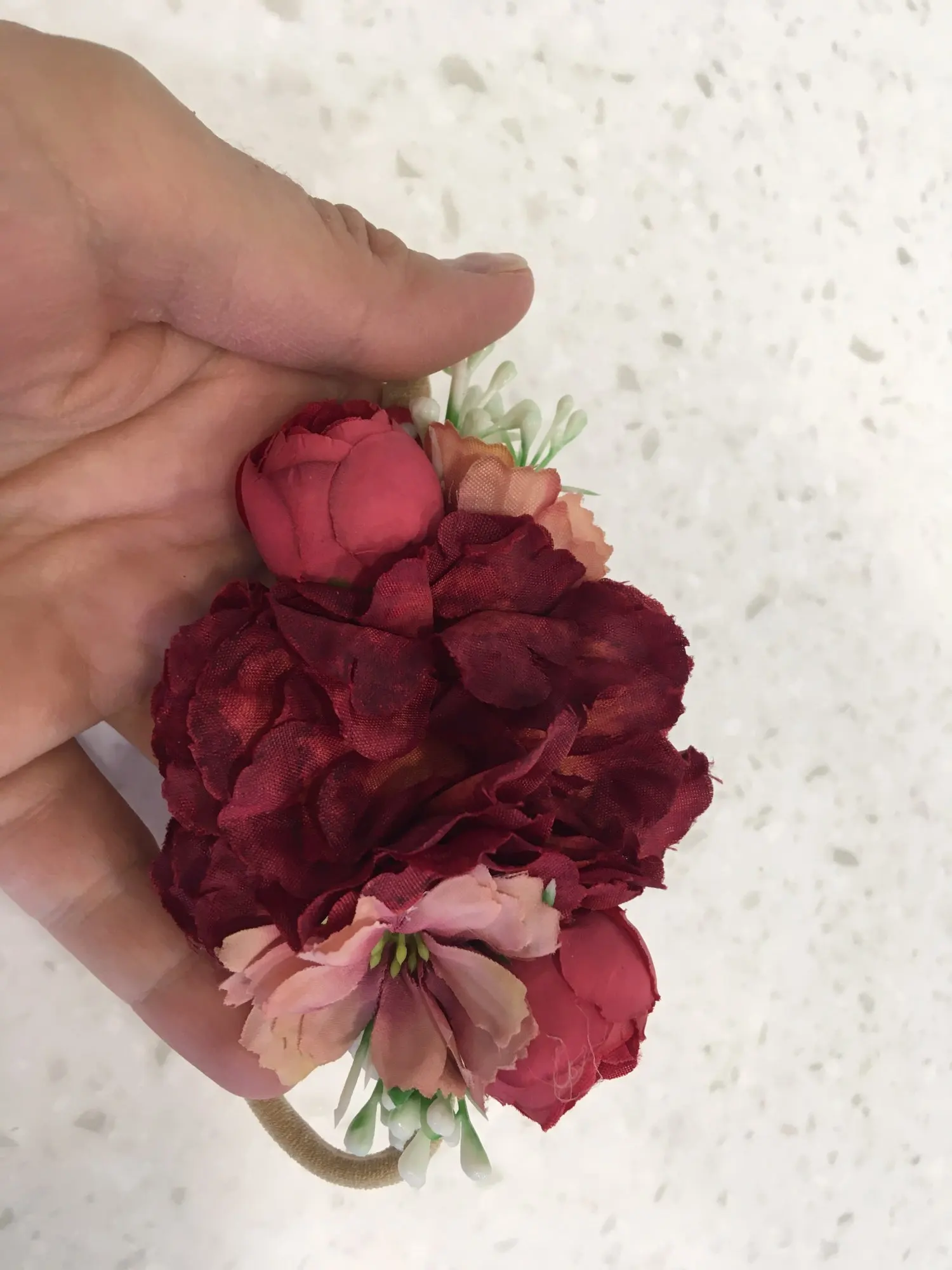повязки очень хорошего качества, выглядят практически как живые цветы. резинка очень мягкая, тянется отлично