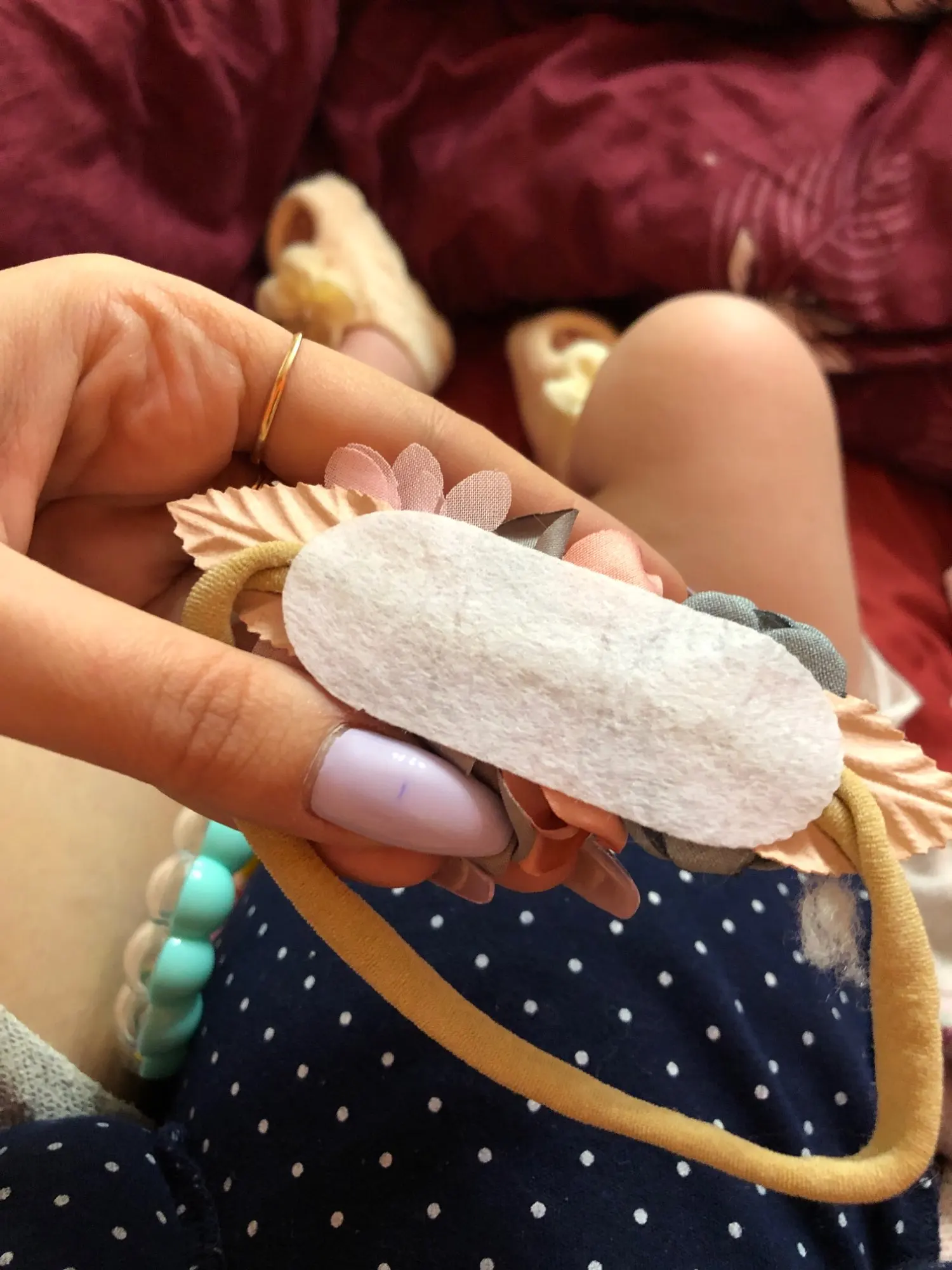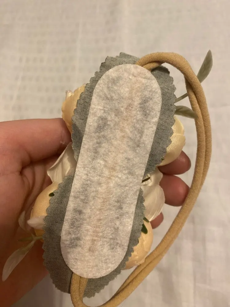 пластиковые веточки вообще не понятно зачем на детской повязке, очень жесткие. пришлось переделать самой