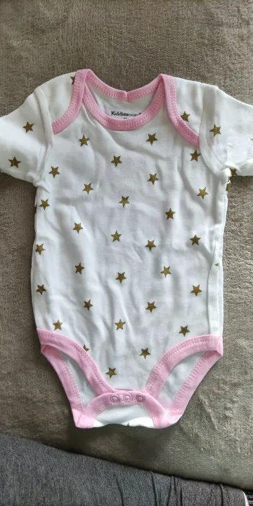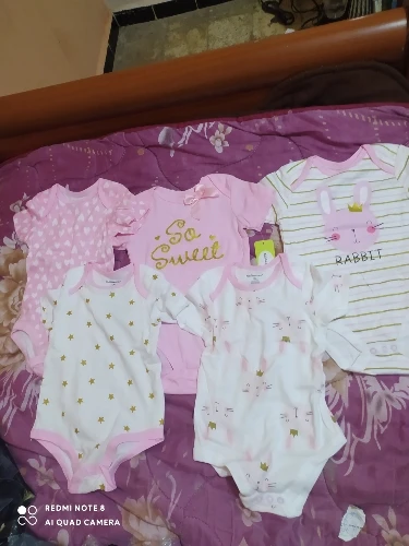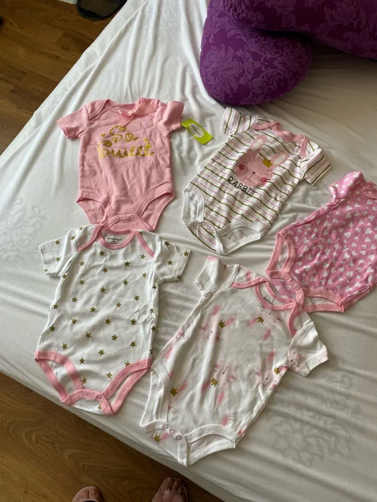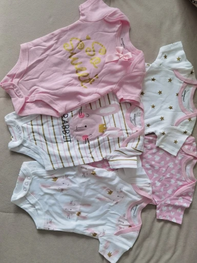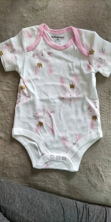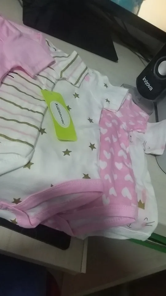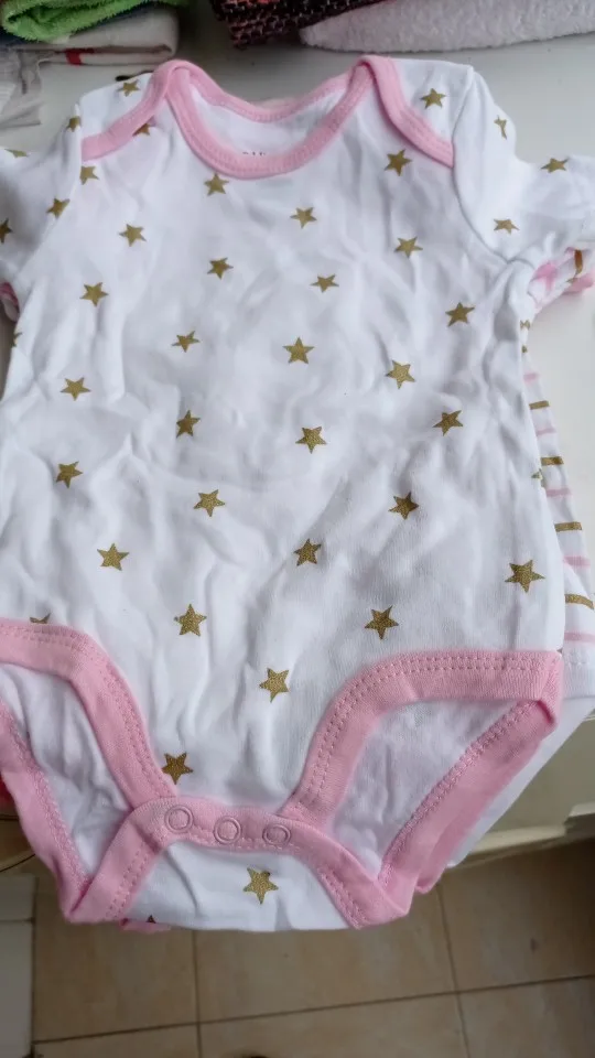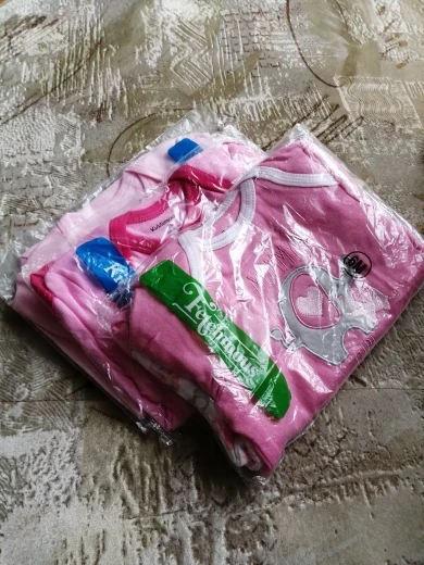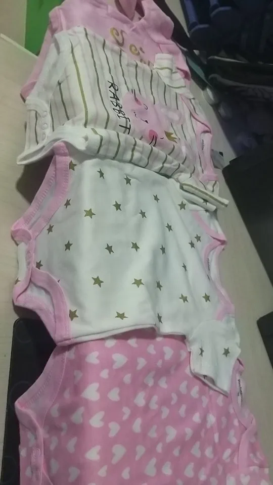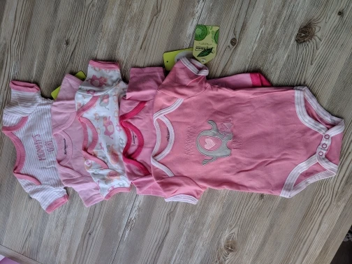 Супер быстрая доставка в течении 13 дней. Качество отличное, 100 % хлопок, цвета и рисунки как на картинке. Единственное, боди отличаются по размерам. Хотя стоит 3 месяца ростовка. 3 боди побольше, и 2 боди почему-то покороче других. Поэтому только 4 звезды.