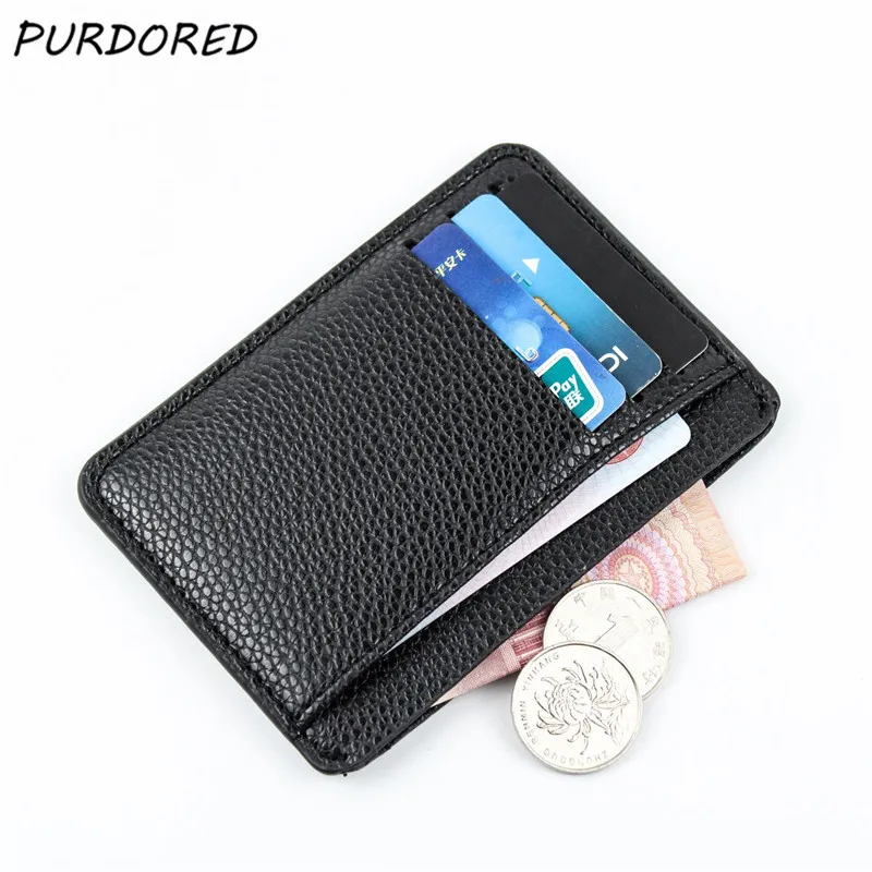 PURDORED 1 шт. черный мужской держатель для карт из искусственной кожи ID держатель для карт тонкий светильник для банковских карт кошелек с несколькими слотами Тонкий чехол для карт