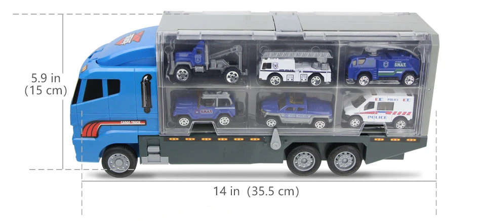 Миниатюрный сплав 2 в 1 инженерные автомобили игрушки пожарная Полиция Грузовик с функцией выброса и переноски литая модель автомобиля грузовик подарки для мальчиков