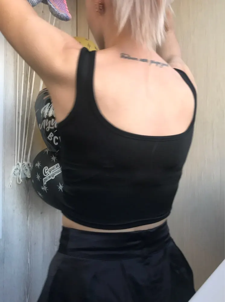 пришел мой топ мне очень нравится качество хорошее даже не чувствуется спасибо большое