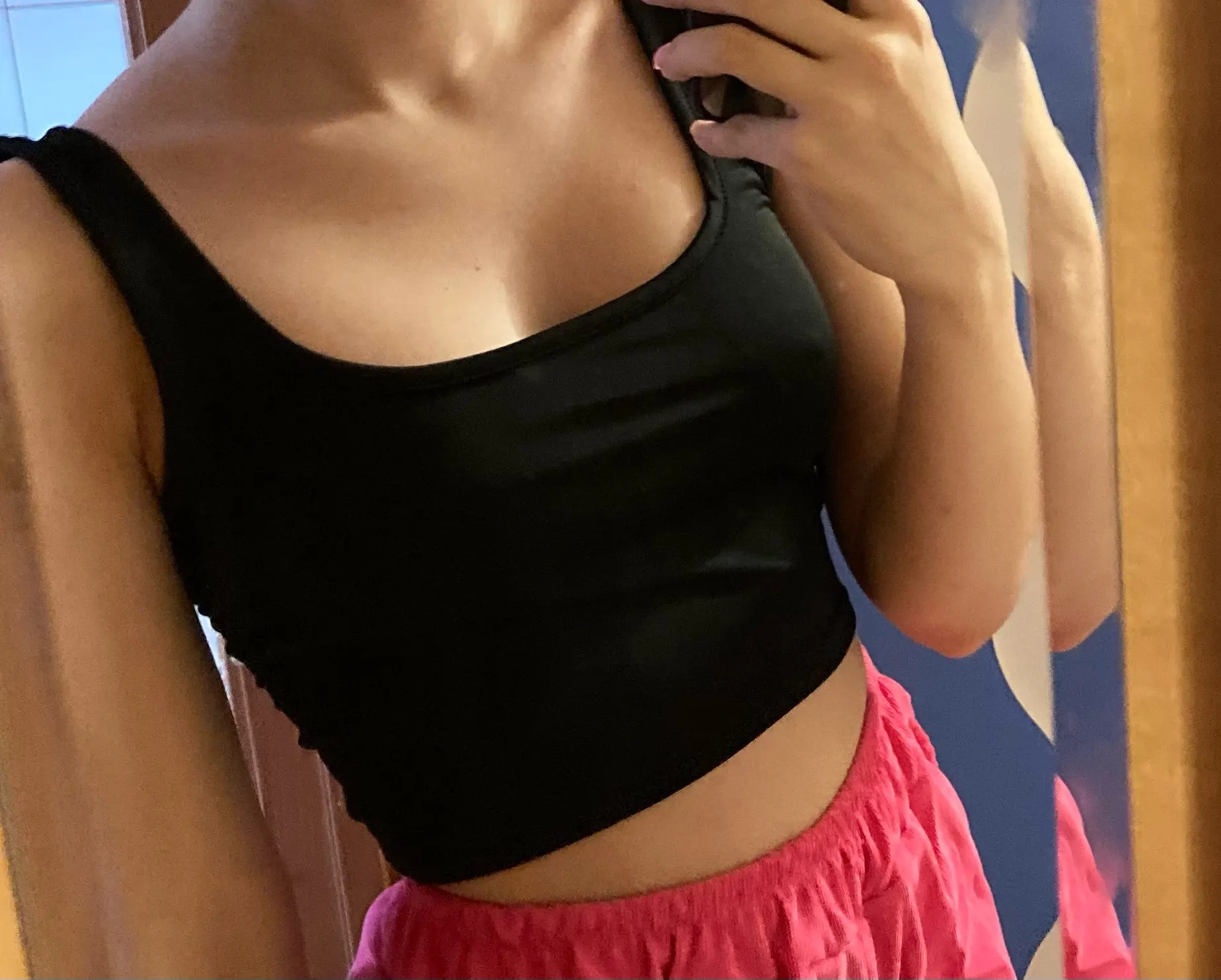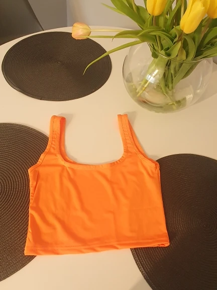 Укороченный топ идеально подходит! Это хороший эластичный и прочный материал. Плотная и хорошо сшитая отделка. Подтяжки были немного длинноваты, но я немного обрезала их, сшила сзади и сделана. Хороший продукт, который я рекомендую :)