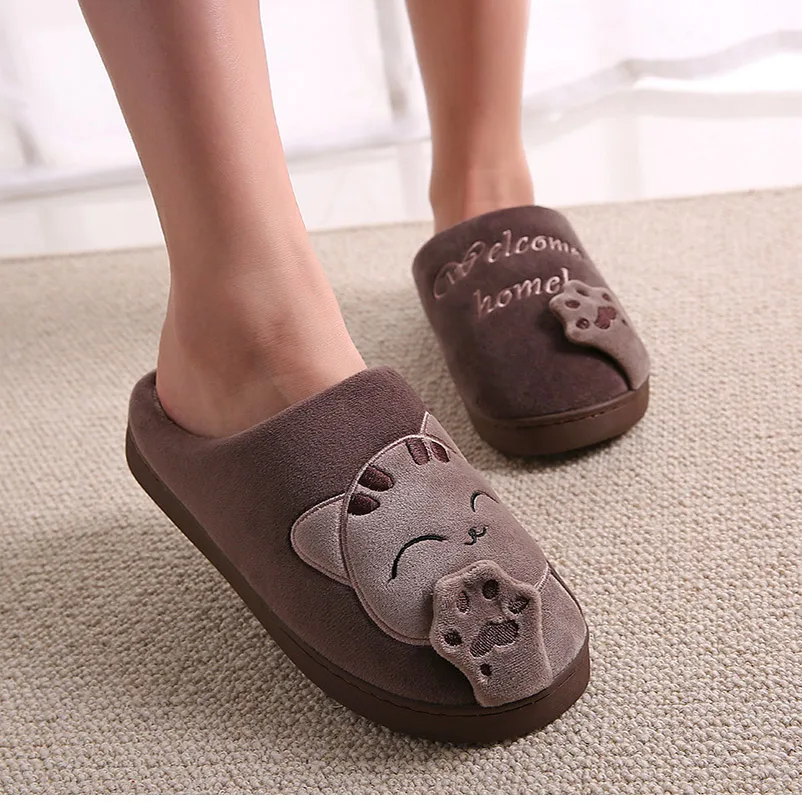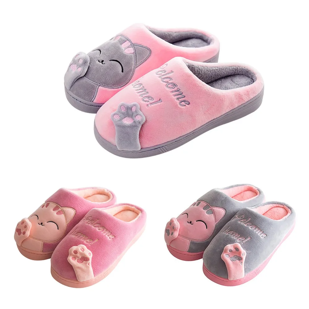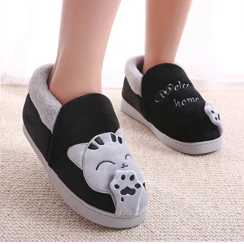 Новые женские зимние теплые домашние тапочки; Обувь для влюбленных пар; Женские плюшевые тапочки без застежки с изображением кота; Мягкая домашняя обувь на плоской подошве; Удобная женская и мужская обувь размера плюс