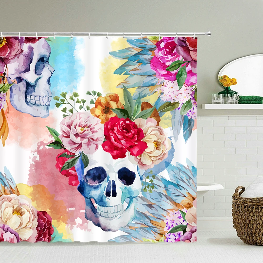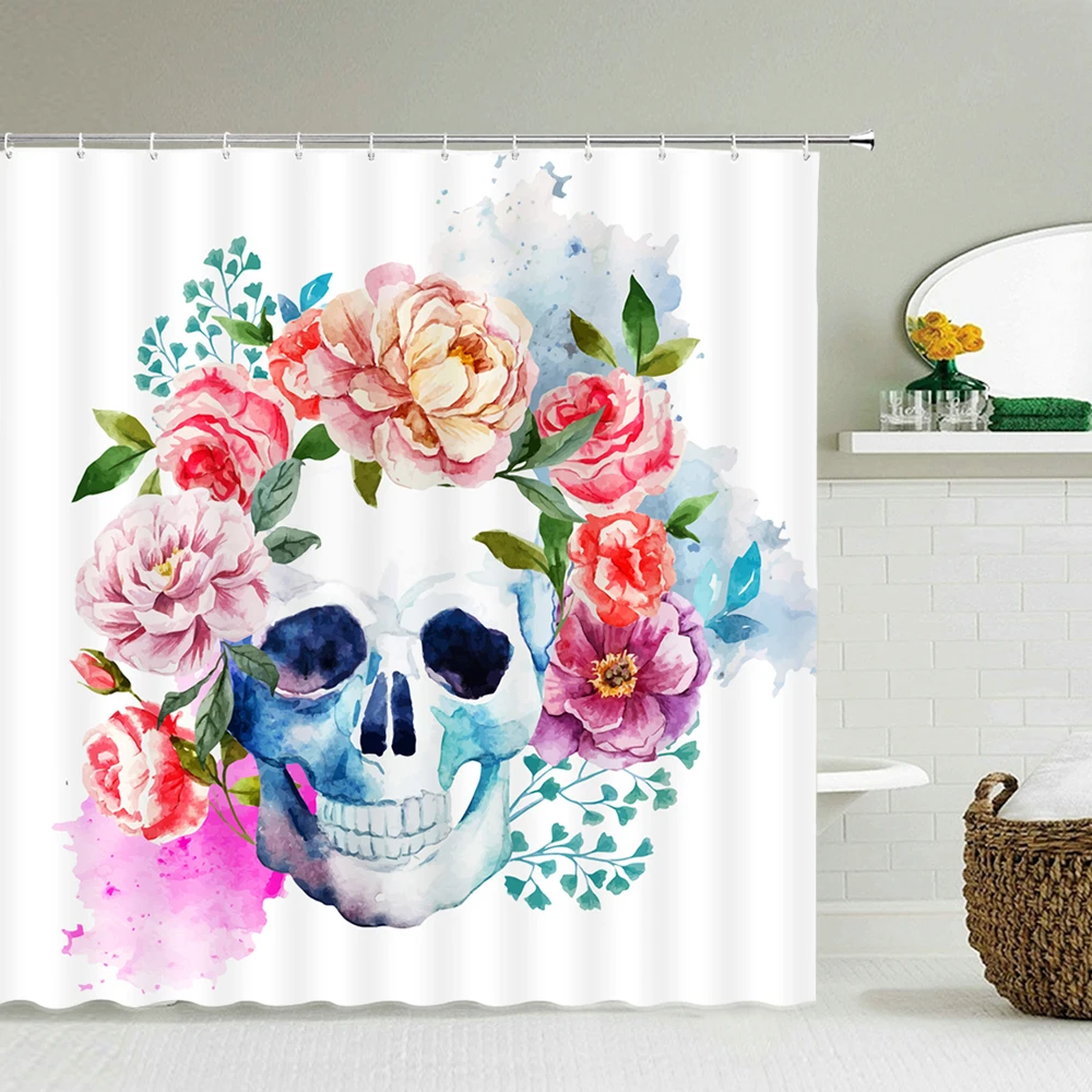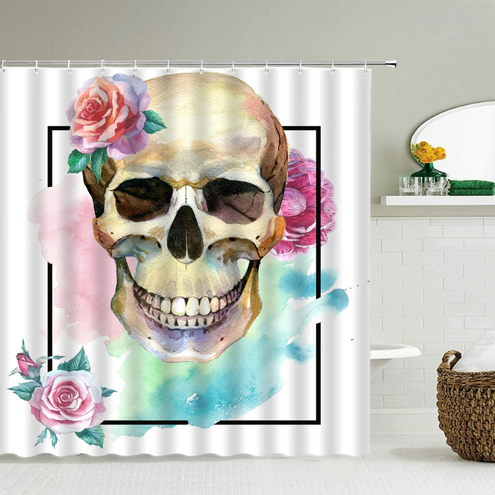 Череп занавеска для душа уникальный подарок Водонепроницаемая занавеска для ванной цветы полиэстер ткань 3d печать занавески для ванной украшения