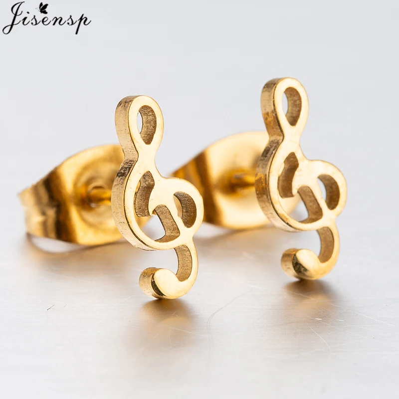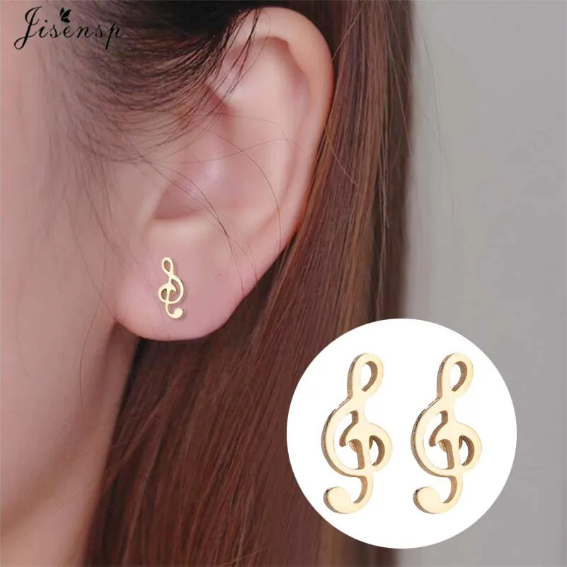 Минималистичные серьги-гвоздики Jisensp в виде музыкальной ноты для женщин, серьги из нержавеющей стали для музыкальных нот, маленькие серьги-гвоздики, детские ювелирные изделия, подарок