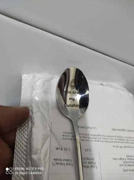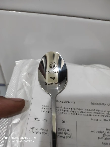 Сделала заказ 18 января. Ложка пришла в Петербург только 23 марта. Доставка очень долгая. Ложка на чайну не похожа. Ручка у нее длинная. Больше подойдет для мороженого. Надпись на ложке сделана четко. Качество нормальное.