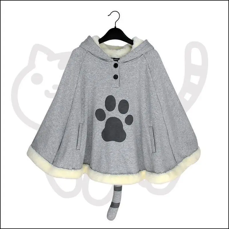 Плащ в стиле Лолиты Harajuku, плащ с капюшоном в японском стиле, сердитый кот, Рождественский олень, накидка флисовая, Свободный пуловер, пальто с капюшоном с рукавами летучая мышь