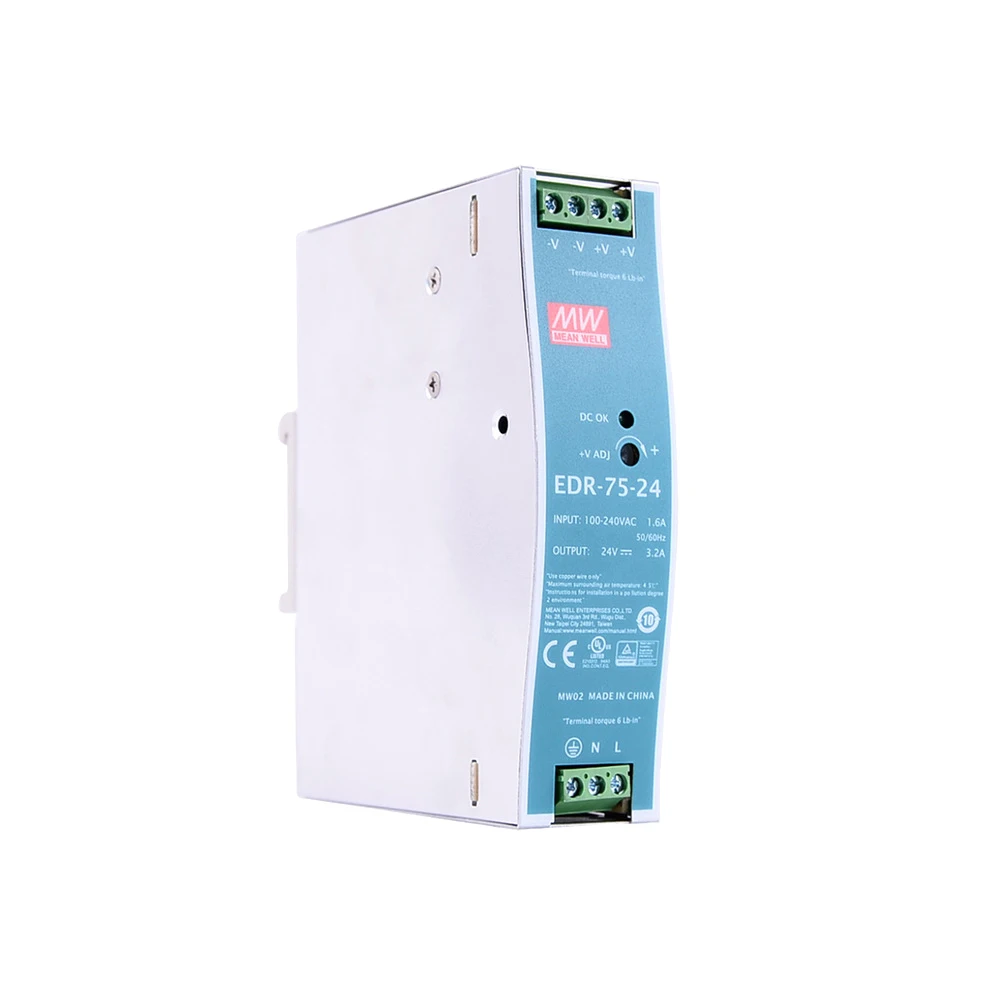 Промышленный источник питания на DIN-рейку Mean Well EDR-75-24, 24 В постоянного тока, 76,8 А, Вт