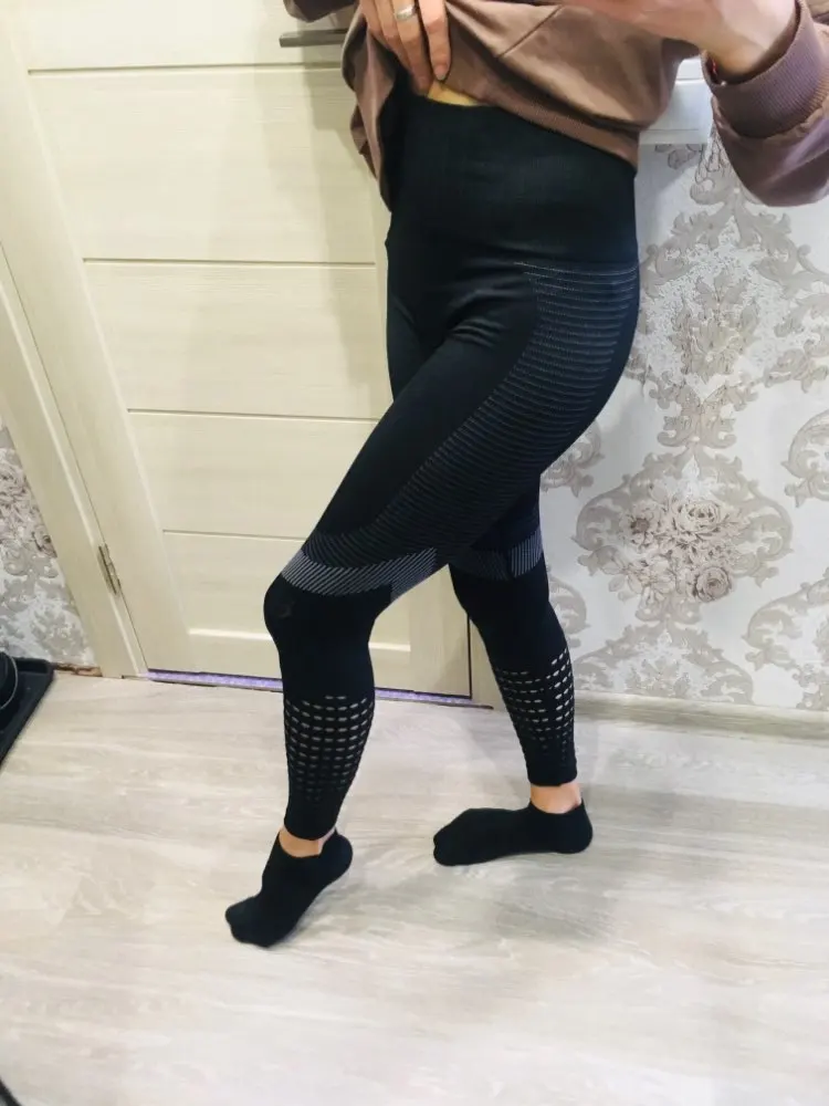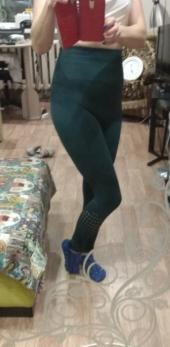 Легинсы красивые, ткань плотная. Швы обработаны хорошо. Но они не подтягивают. Я конечно понимаю, фигура не огонь, но из-за широкого и более плотного пояса, живот сильно выпирает внизу, его сверху пояс как бы выталкивает. И ещё - сильно чешется кожа. Надеюсь, после стирки пройдёт. Доставка до Ижевска 5 недель, но из них почти 3 недели товар был на таможне.