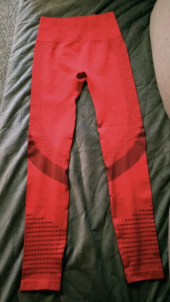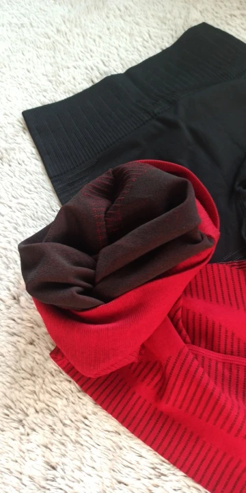 Брала ранее зеленые, они вообще огонь, плотные, не просвечивают, а сейчас взяла красные, цвет не прям красный, а скорее алый какой то из за темной изнанки(((на свой размер s взяла м, нужно было брать s, тянутся очень хорошо, минус в том что с изнаночной стороны они темные и этот темный цвет проступает через красный. Не просвечивают, посмотрим как покажут себя при тренировке, а то зеленые после 3й тренировки поползли на попе после поясяда)))))
