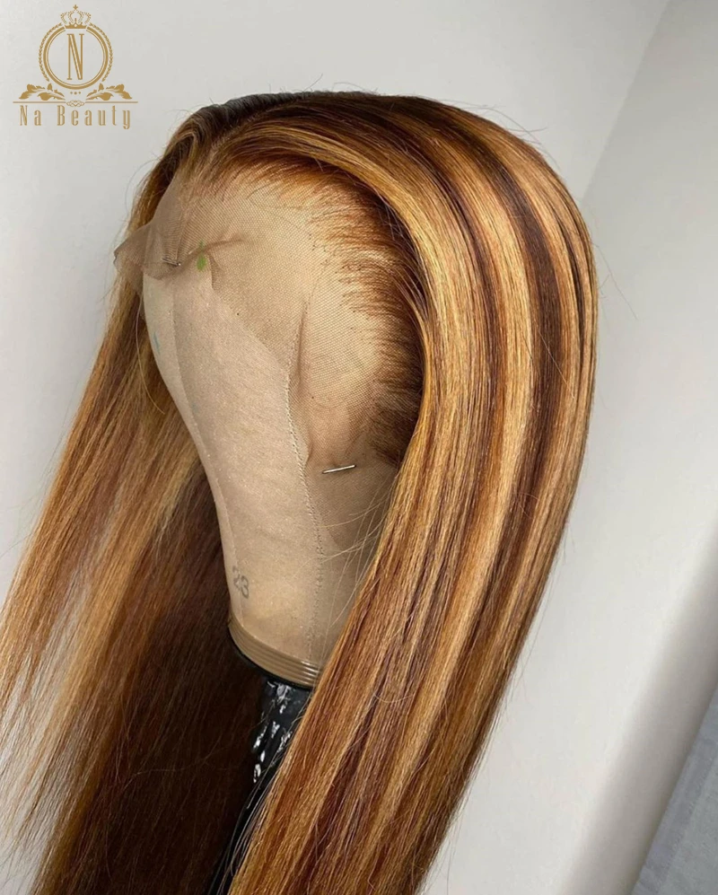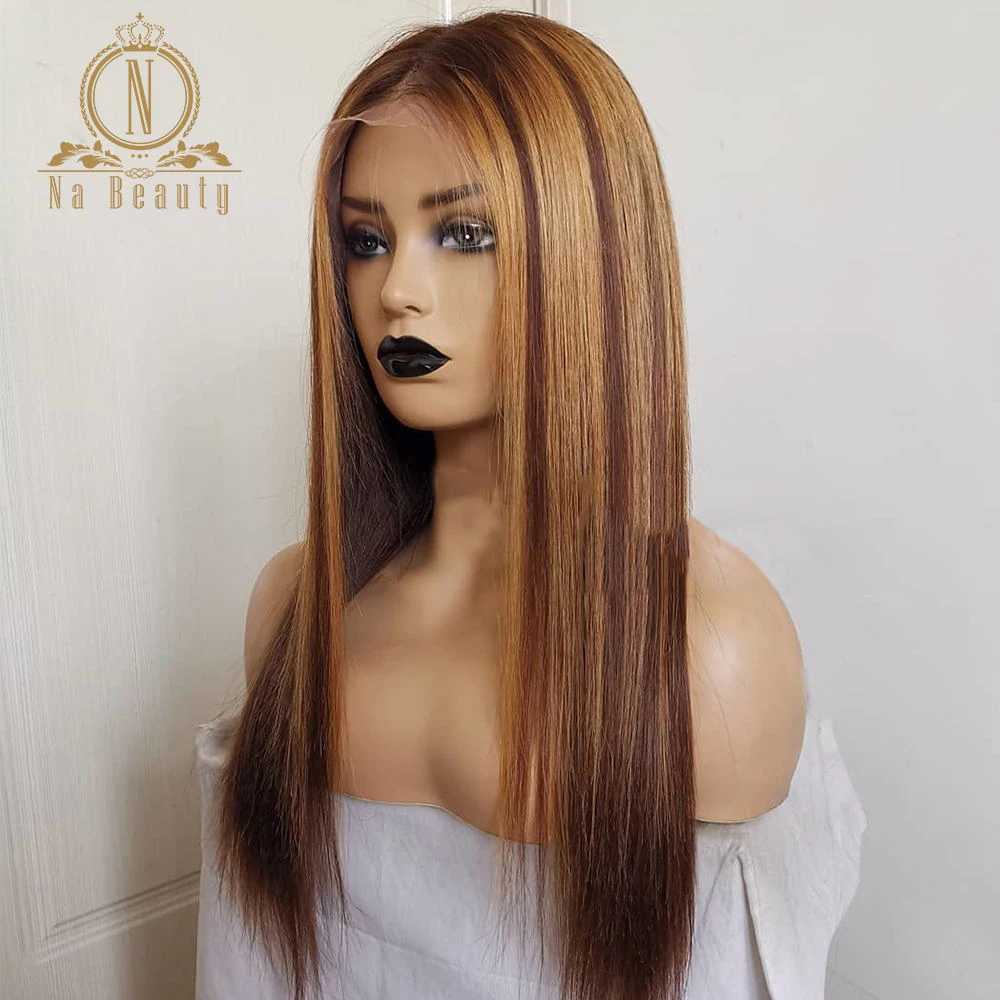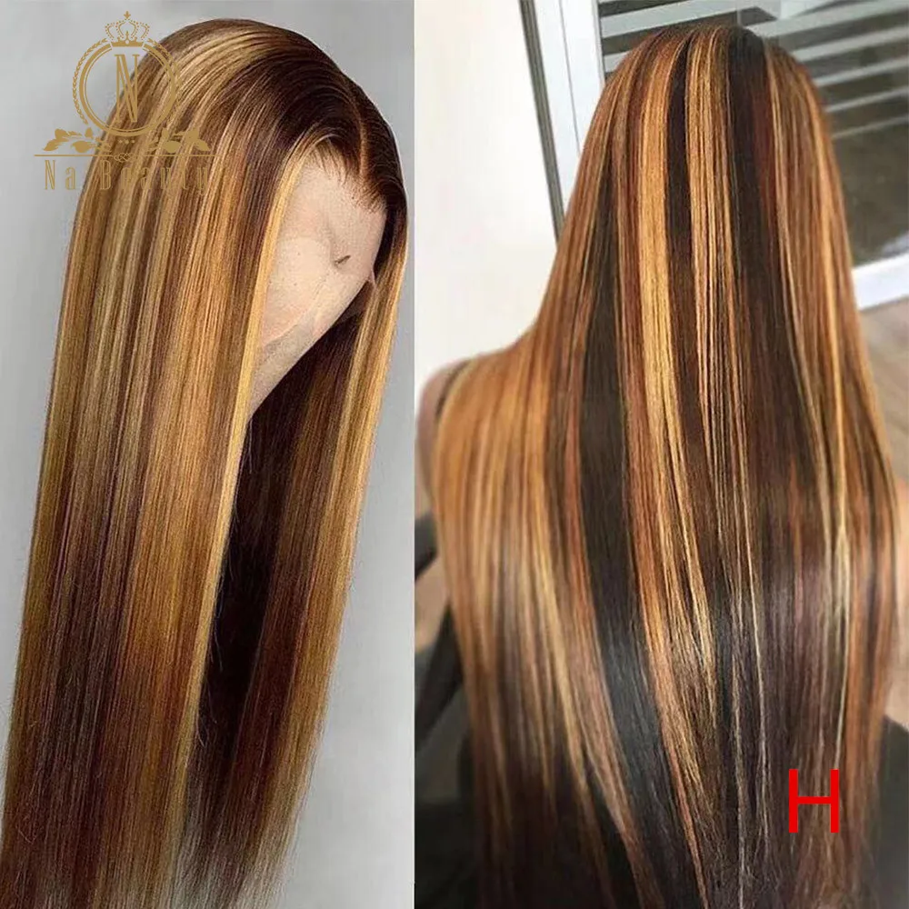 Прозрачные парики из человеческих волос на фронте с кружевом, коричневый парик, предварительно выщипанный медовый блонд, цвет Омбре, 180 плотность, волосы Remy Nabeauty