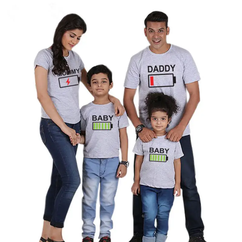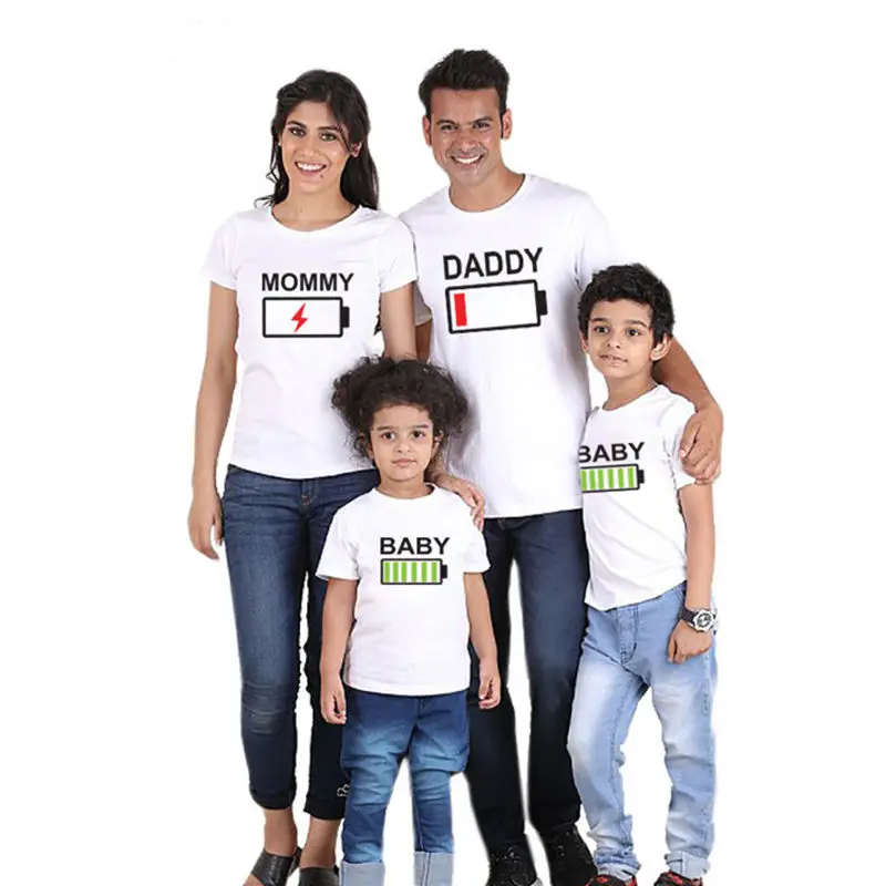Одинаковые комплекты для семьи, 1 шт. футболки для папы и сына Одинаковая одежда для мамы и ребенка футболка с короткими рукавами и принтом батареи