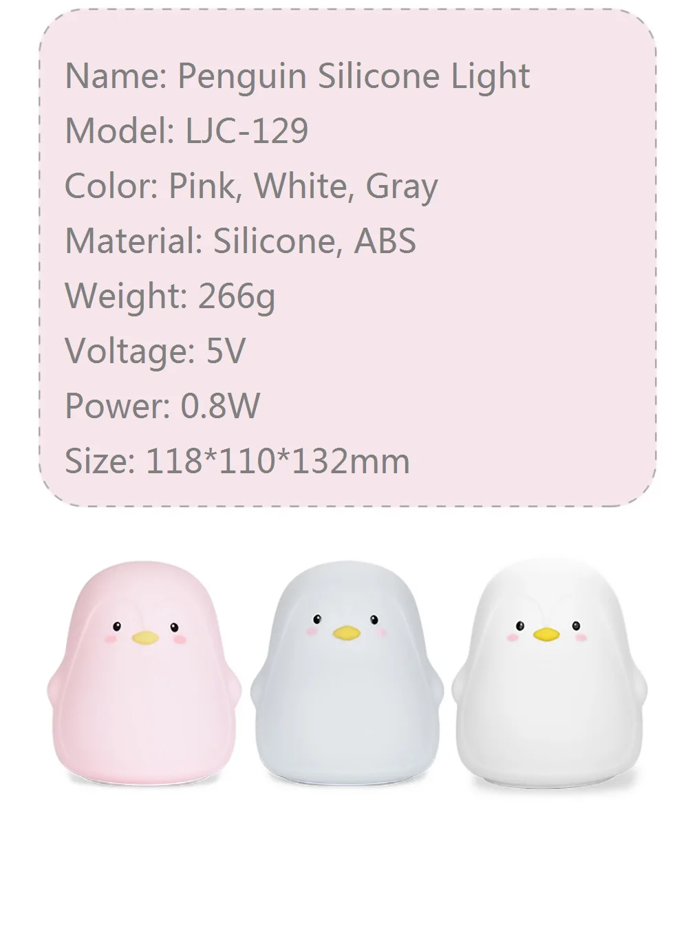 Силиконовый ночник с сенсорным выключателем в виде пингвина, перезаряжаемый светодиодный ночник 7 цветов с USB-зарядкой, Детский Рождественский подарок