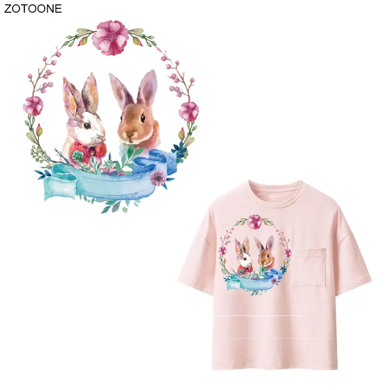 Термоклейкая нашивка ZOTOONE, Симпатичные нашивки с кроликом и цветком для одежды, Пасхальная наклейка для детей, тепловые аппликации сделай сам