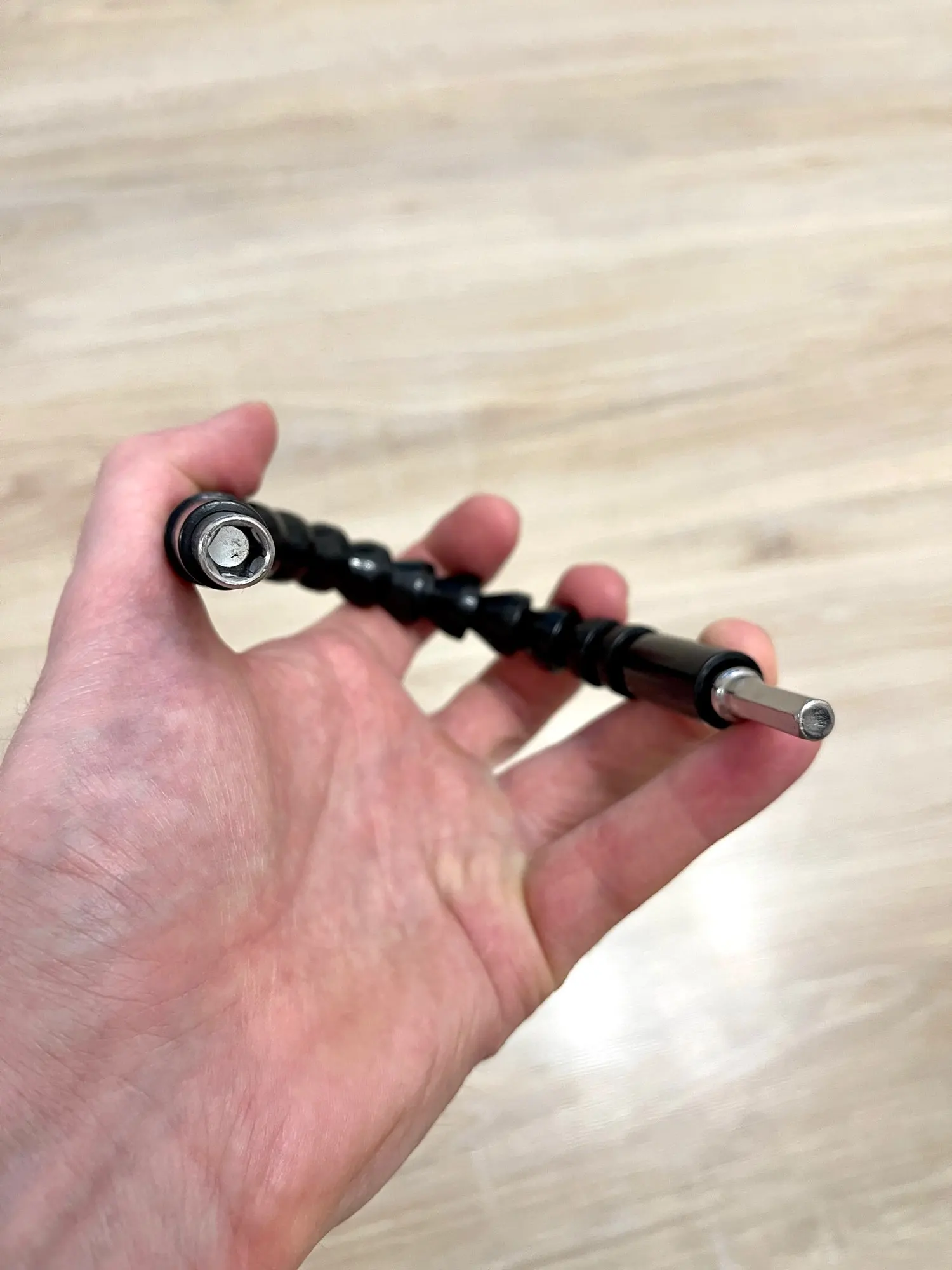 Удобный гибкий удлинитель. Из минусов только то, что магнит для удержания биты слабоват. Конечно же надо использовать только на небольшом моменте.