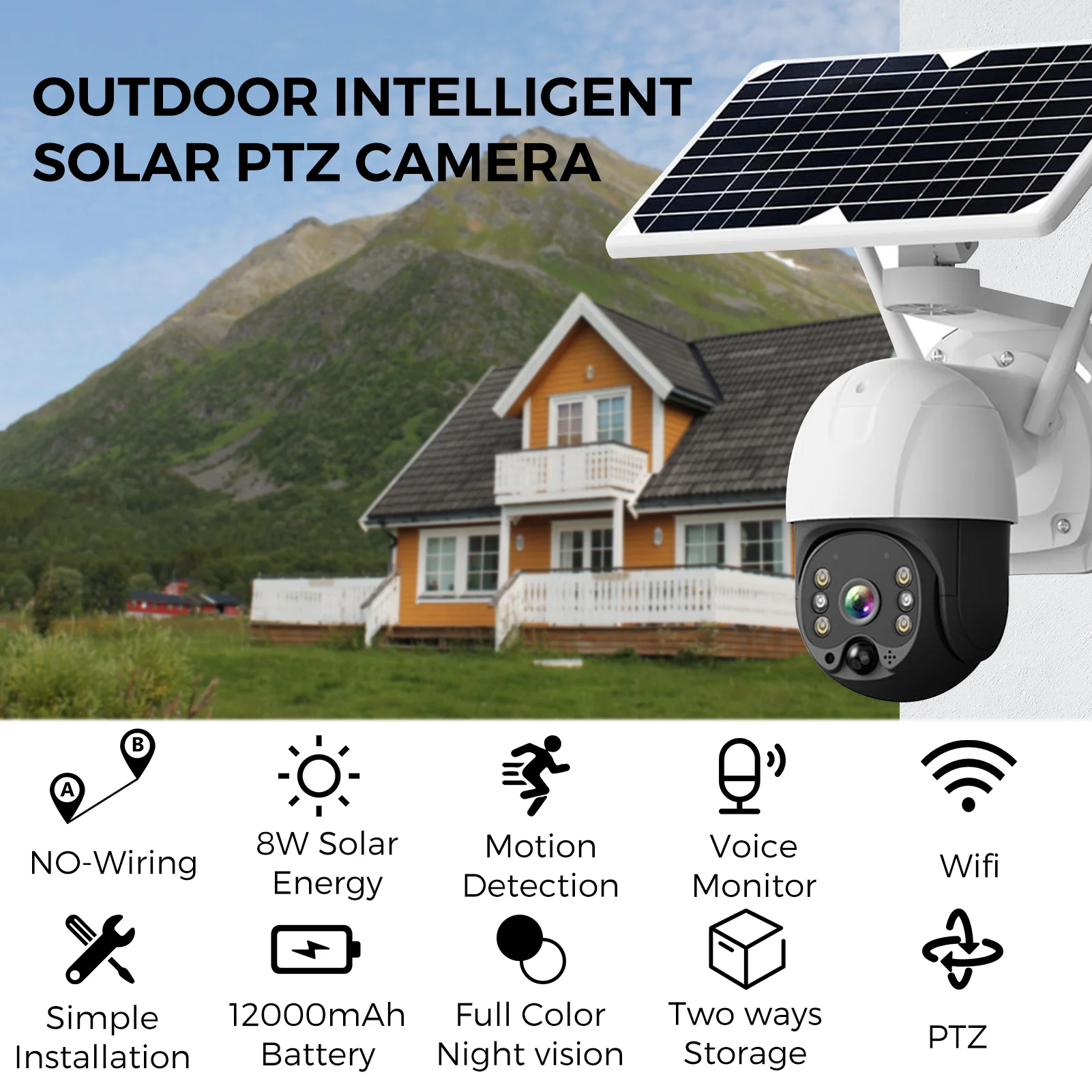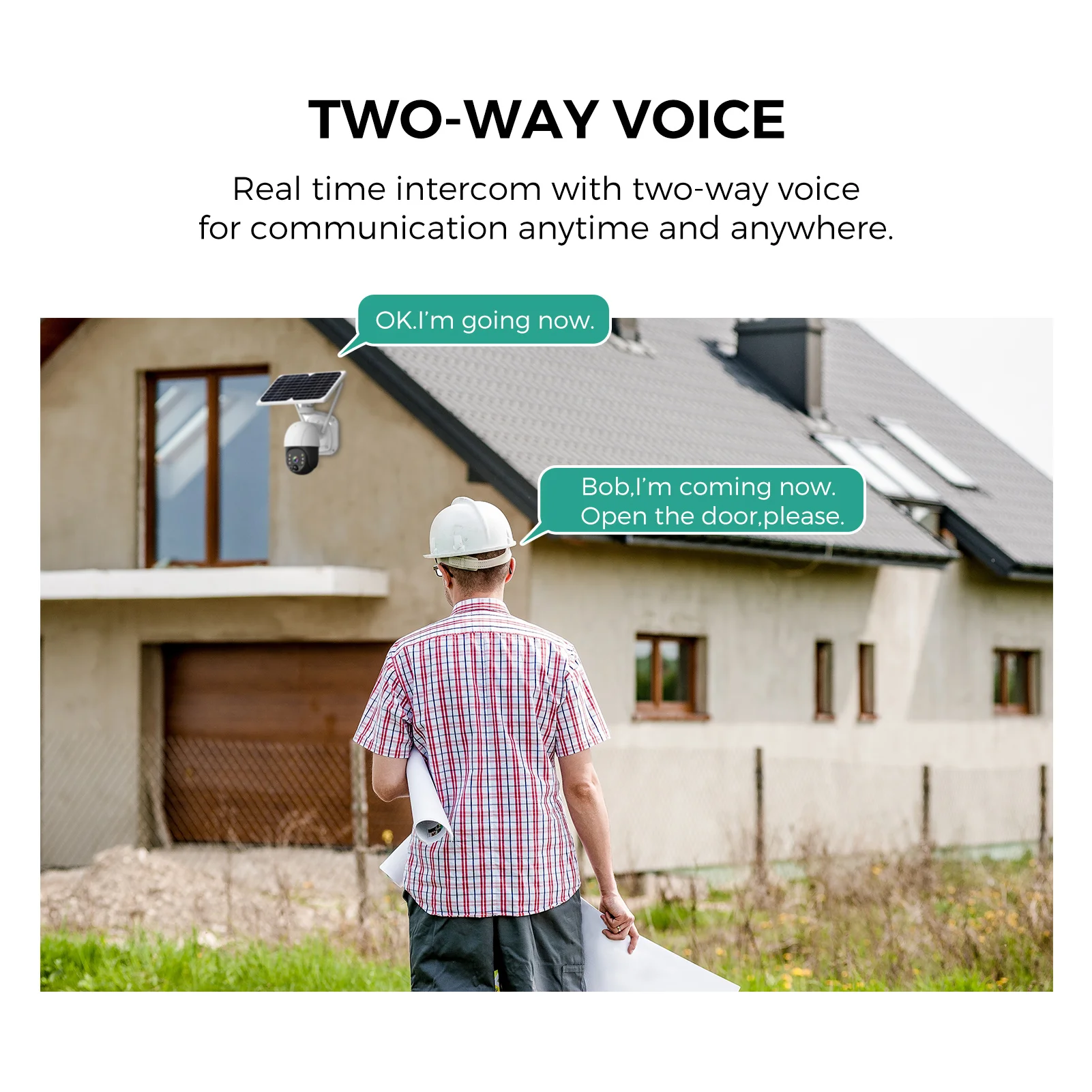 Беспроводная камера безопасности с солнечной панелью, беспроводная камера с перезаряжаемой батареей 3 Мп, Wi-Fi, домашняя камера видеонаблюдения, полноцветное ночное видение