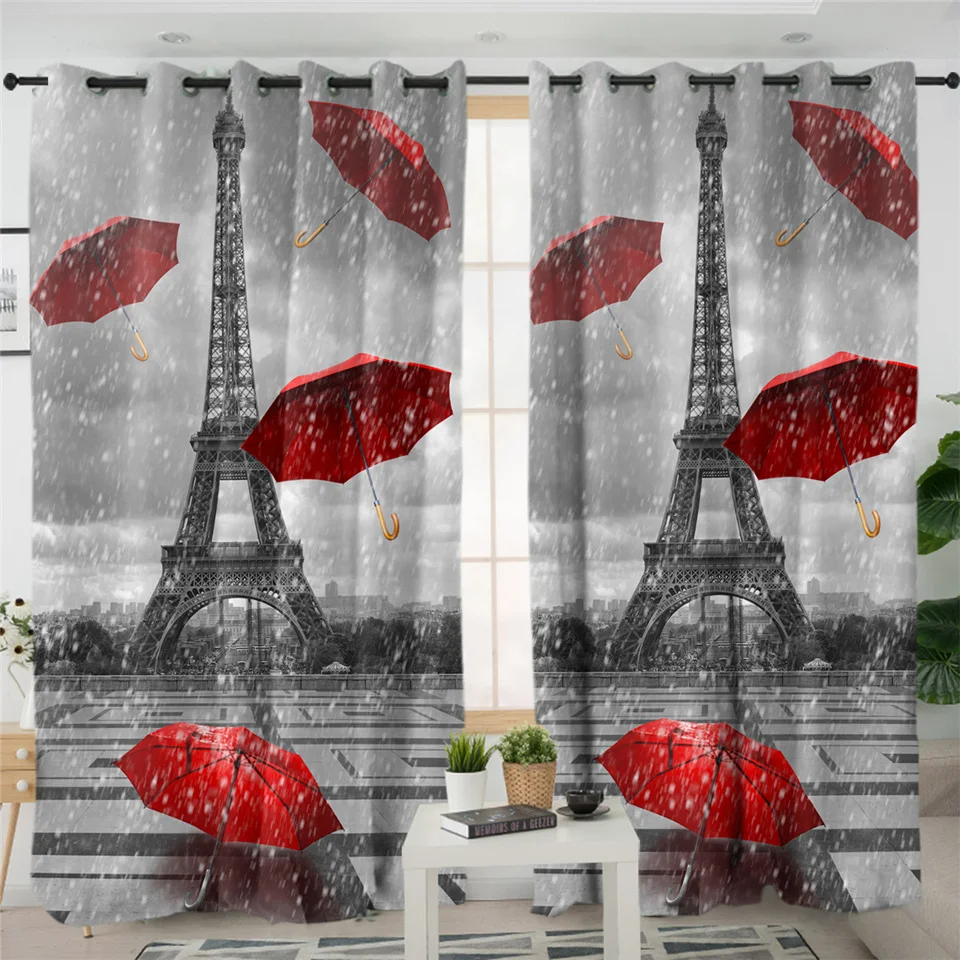 BeddingOutlet шторы с красным кленовым деревом для спальни, картина маслом, роскошные шторы, Франция, Парижская башня, пейзаж, светонепроницаемые шторы
