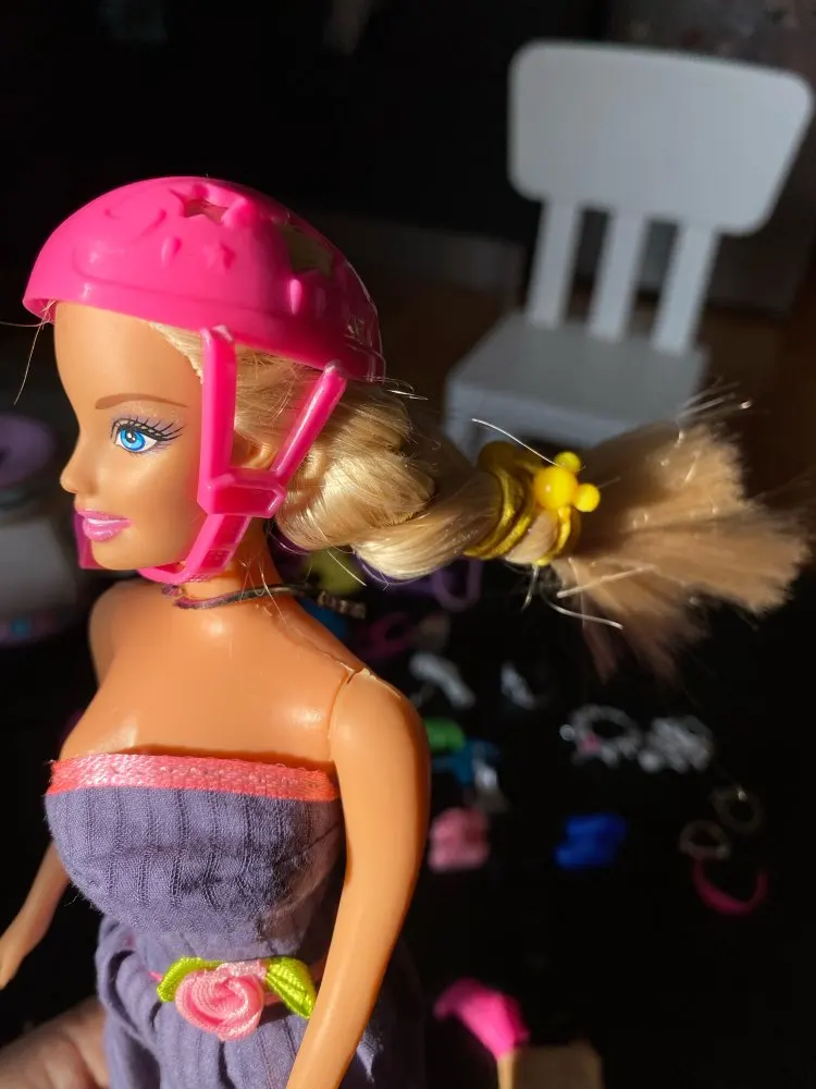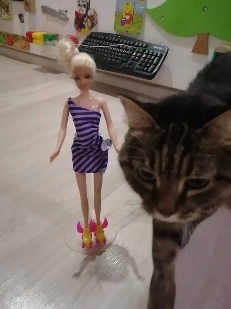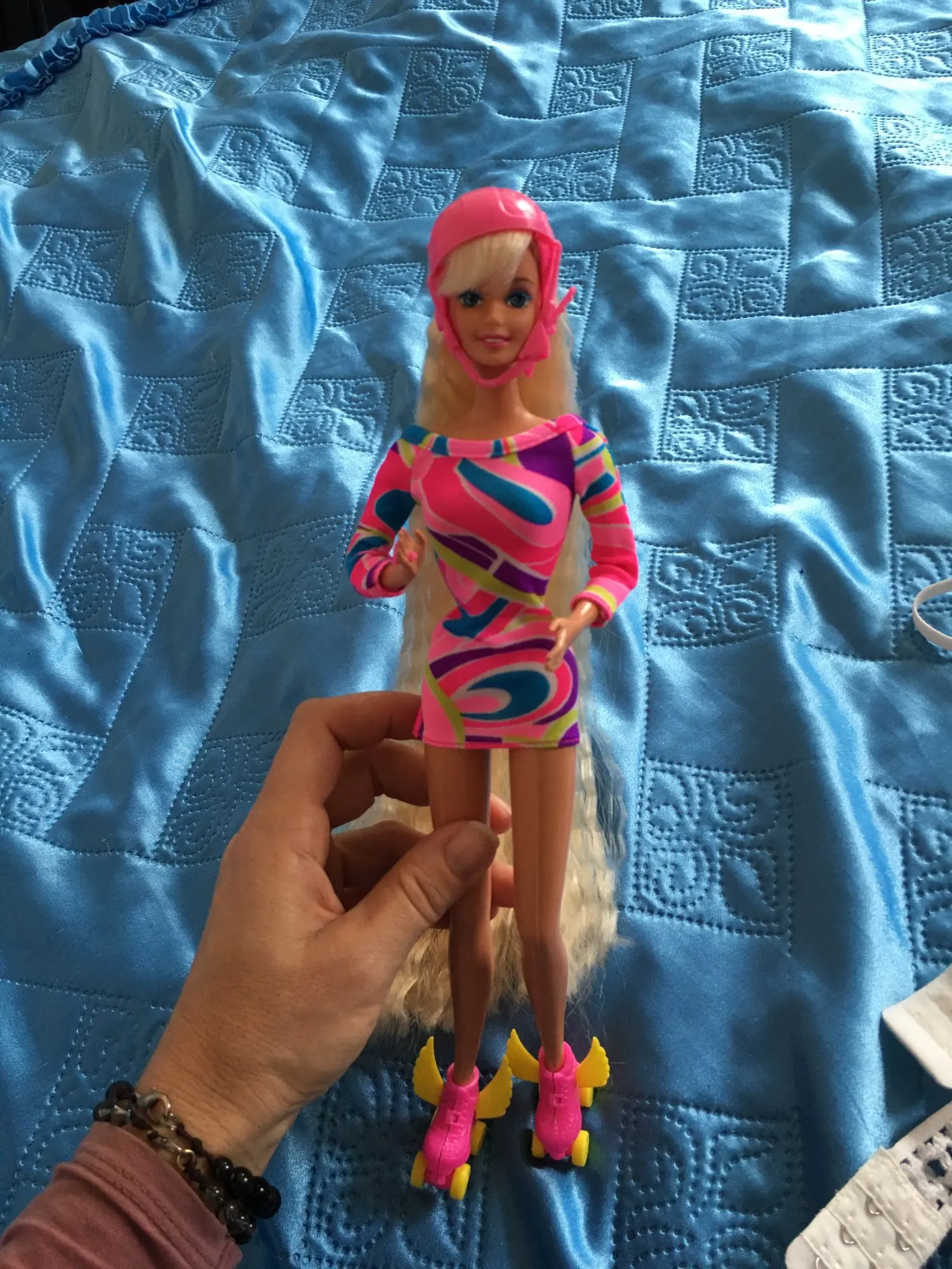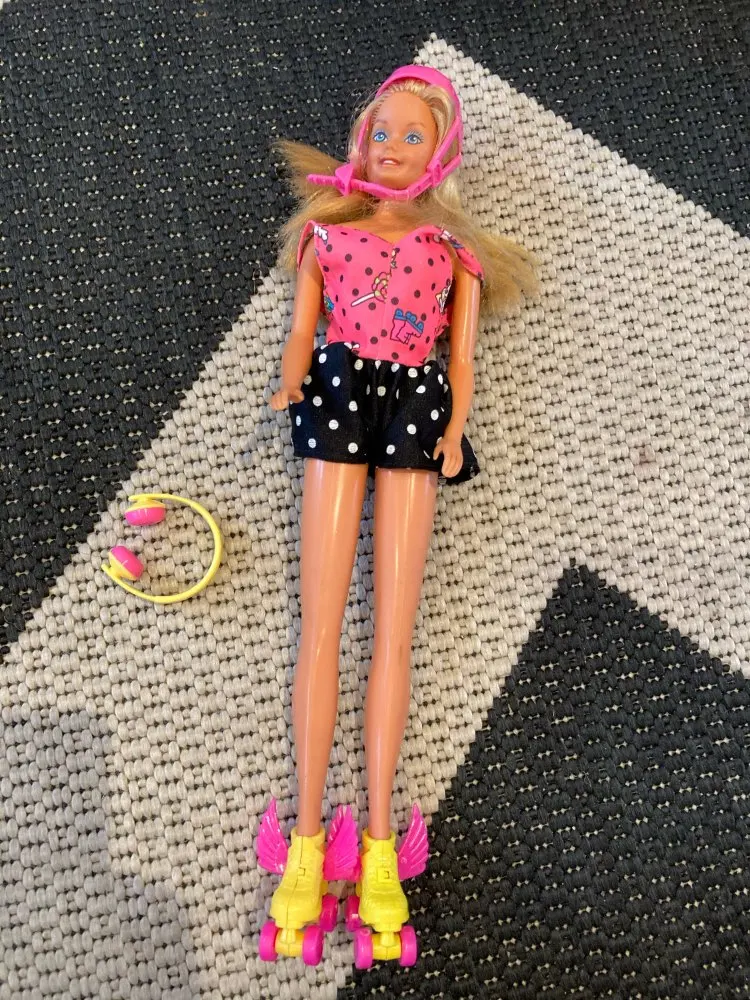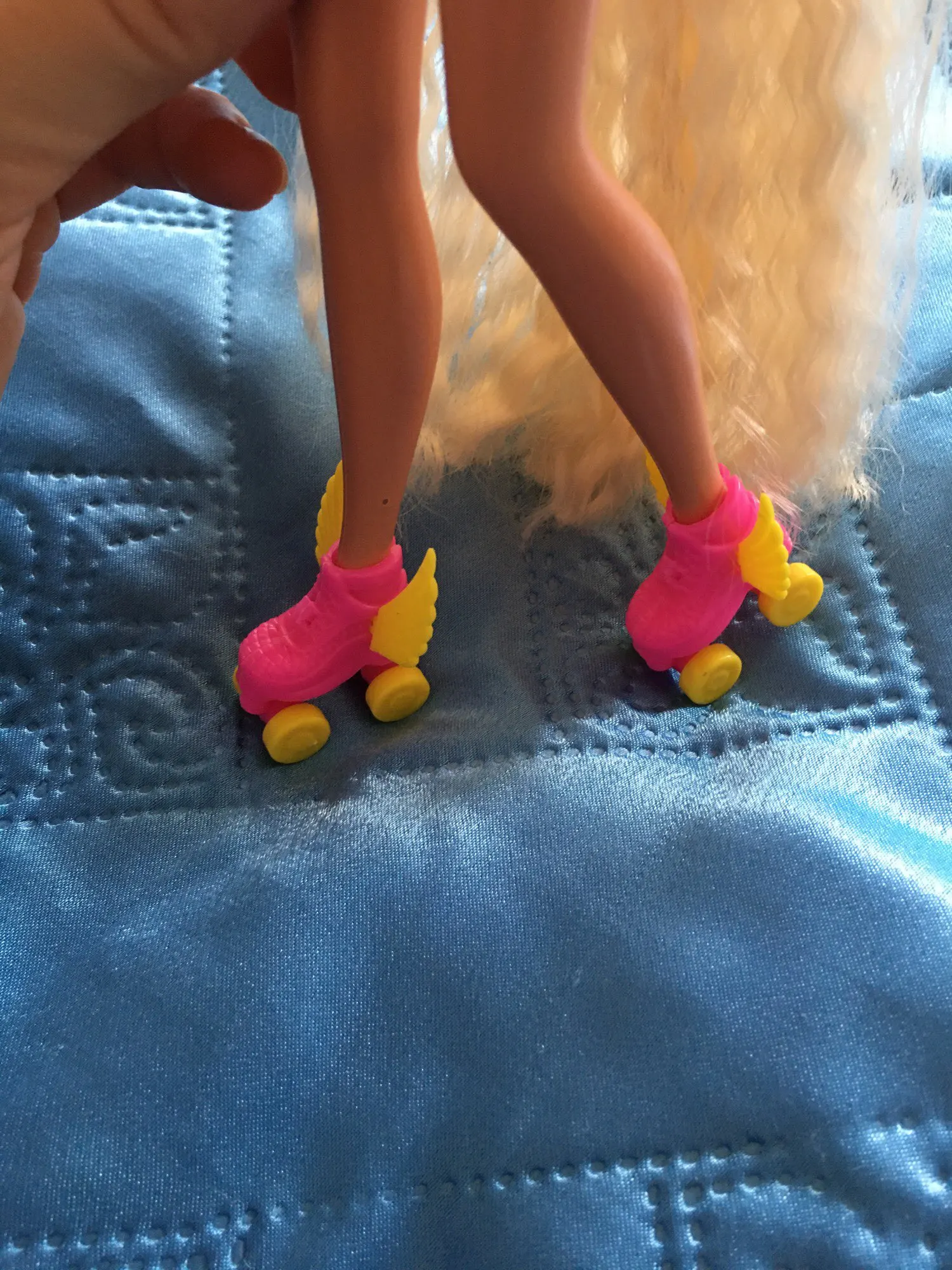 ну качество, конечно такое себе, но это и так видно)) Хотела жёлтые ролики и наушники, как у продавца на фото, а пришли стандартного барбейского розового) наушники норм, ролики на маленькую стопу Барби, пышке не налезли, они раздвигаются на две половинки, а так не засунешь. Шлем выглядит симпотно, но пластик конечно самый дешёвый, сразу становится белый на изломе, даже если слегка согибаешь, так что если для игр ребёнку брать- на пару раз) Ну мне на пофоткать хватит)