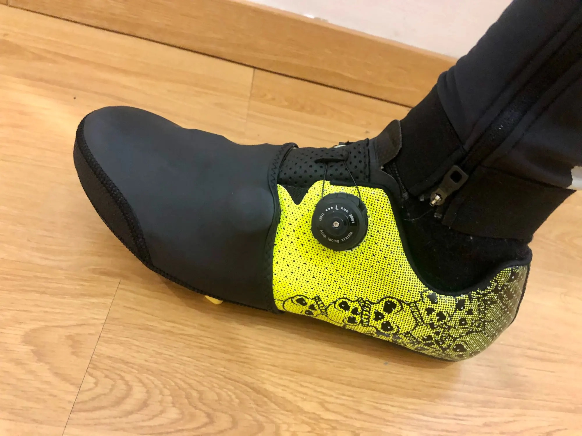 Они прибыли в соответствии с планами. Они хорошо сидят на обуви. У меня есть размер 43 и они из триатлона. Я буду благодарен позже, если вы защитите от холода. Материал выглядит хорошо. Надев его, кажется, что я хочу Сломать его, но с некоторыми усилиями я установила его правильно.