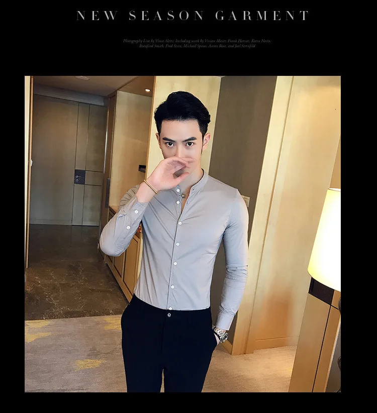Мужская хлопковая рубашка с длинным рукавом, облегающие однотонные ...