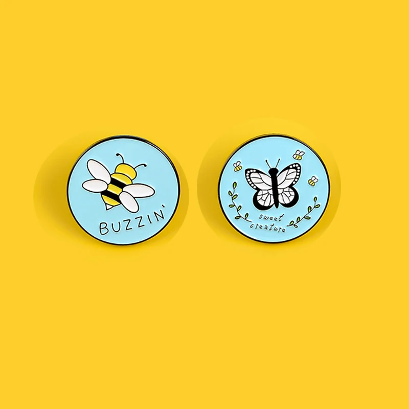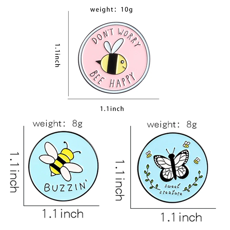 Простая круглая эмалированная булавка не волнуйтесь, счастливая пчела, бабочка, друг, милая Романтика для девочек, юбка, значок для рюкзака, ювелирные изделия, брошь в подарок
