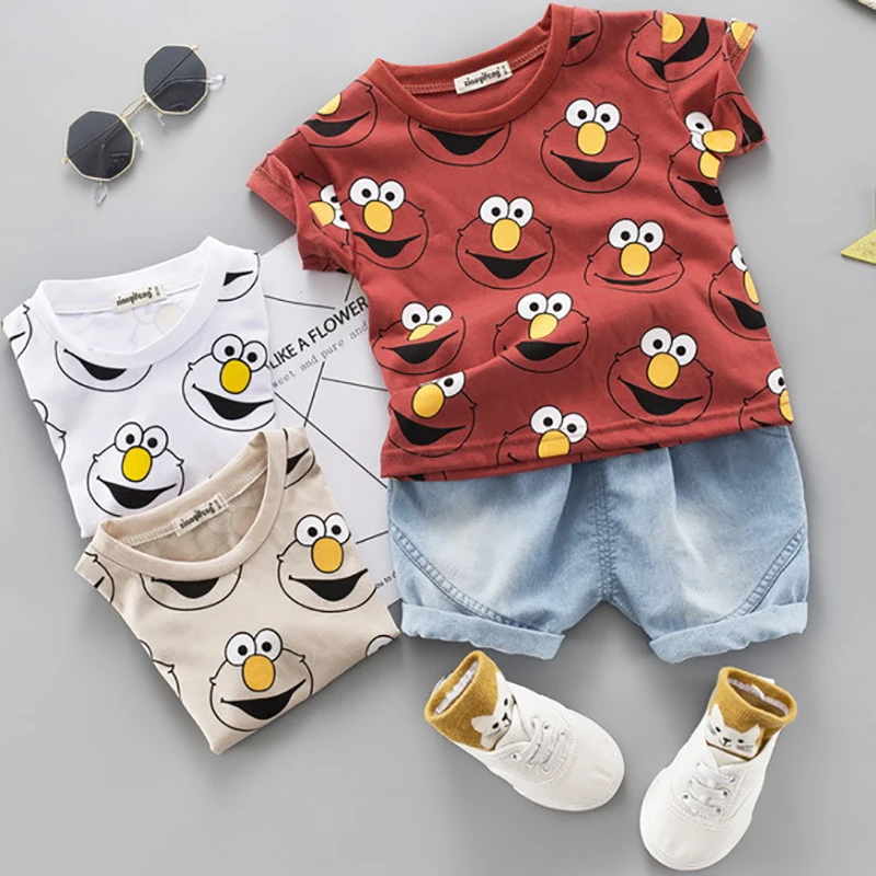 Комплекты одежды для маленьких мальчиков, милая летняя футболка, мультяшная детская одежда для мальчиков, костюм для детей, джинсовый наряд, одежда для маленьких мальчиков