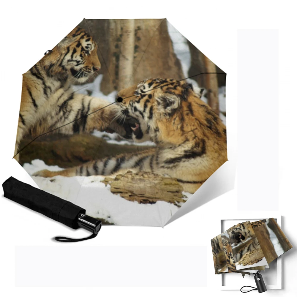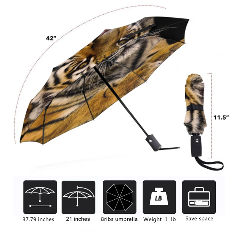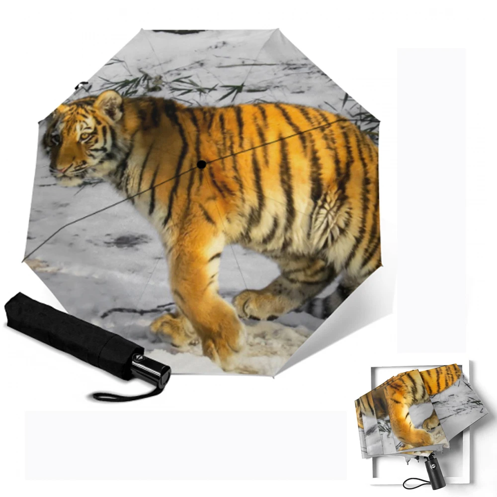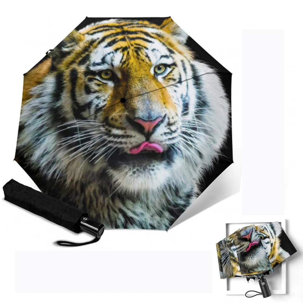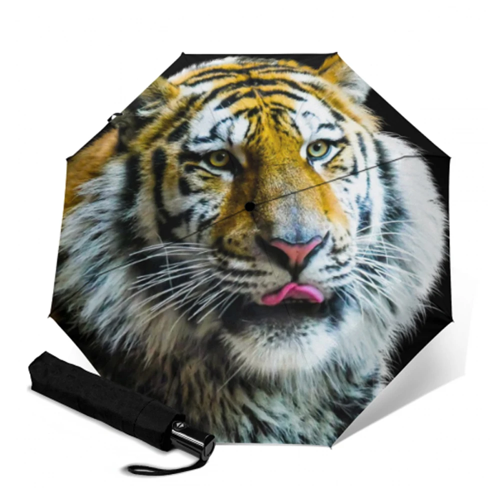 Зонтик с принтом тигра, складной, тройной, для путешествий, зонт от солнца и дождя