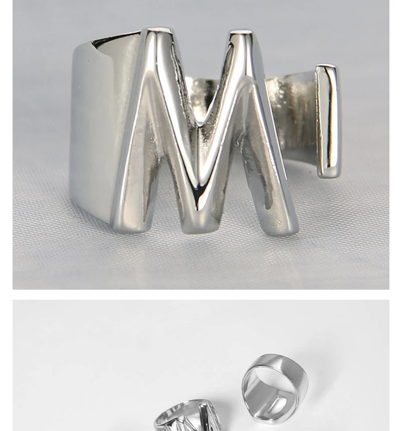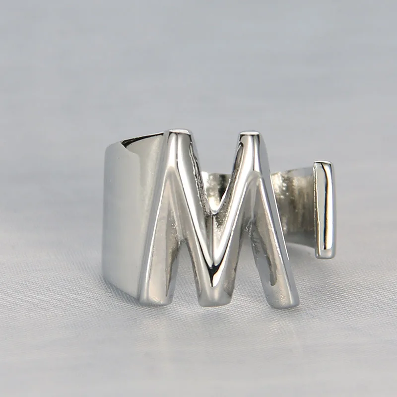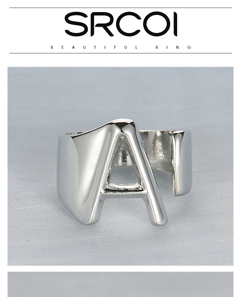 Кольцо SRCOI серебристого цвета, металлическое, 26 букв, открытое, винтажное, регулируемое, широкое, массивное, 2019, женские Украшения