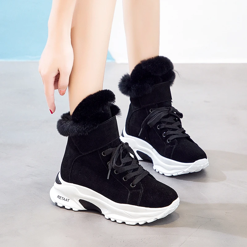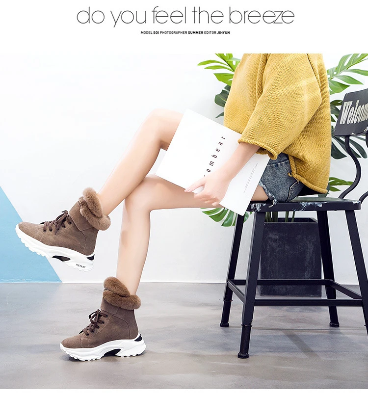 Женские ботильоны на липучке теплая плюшевая зимняя обувь женские зимние ботинки из натуральной кожи Нескользящие женские ботинки botas mujer