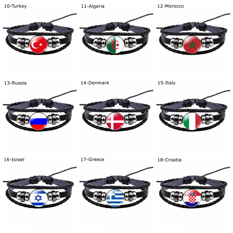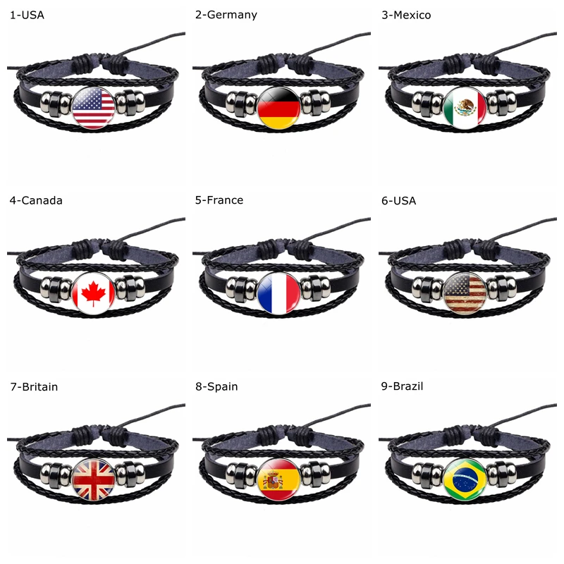 Браслет с флагом, ювелирные изделия с флагом мира, флагом США, Германией, Мексикой, Канадой, Францией, Великобританией, Испанией, Бразилией, черный кожаный браслет