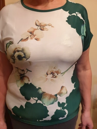 Блузка приятная на ощупь, материал хорошо облегает, слегка растягивается, поэтому бюст в порядке. Рекомендуется