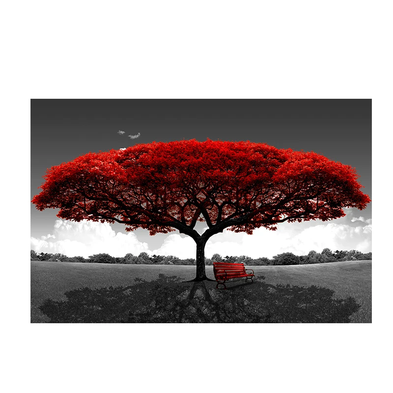 Абстрактные картины с красными деревьями, пейзаж, картина маслом на холсте, постеры и принты, искусство куадросов на стене, картина для гостиной