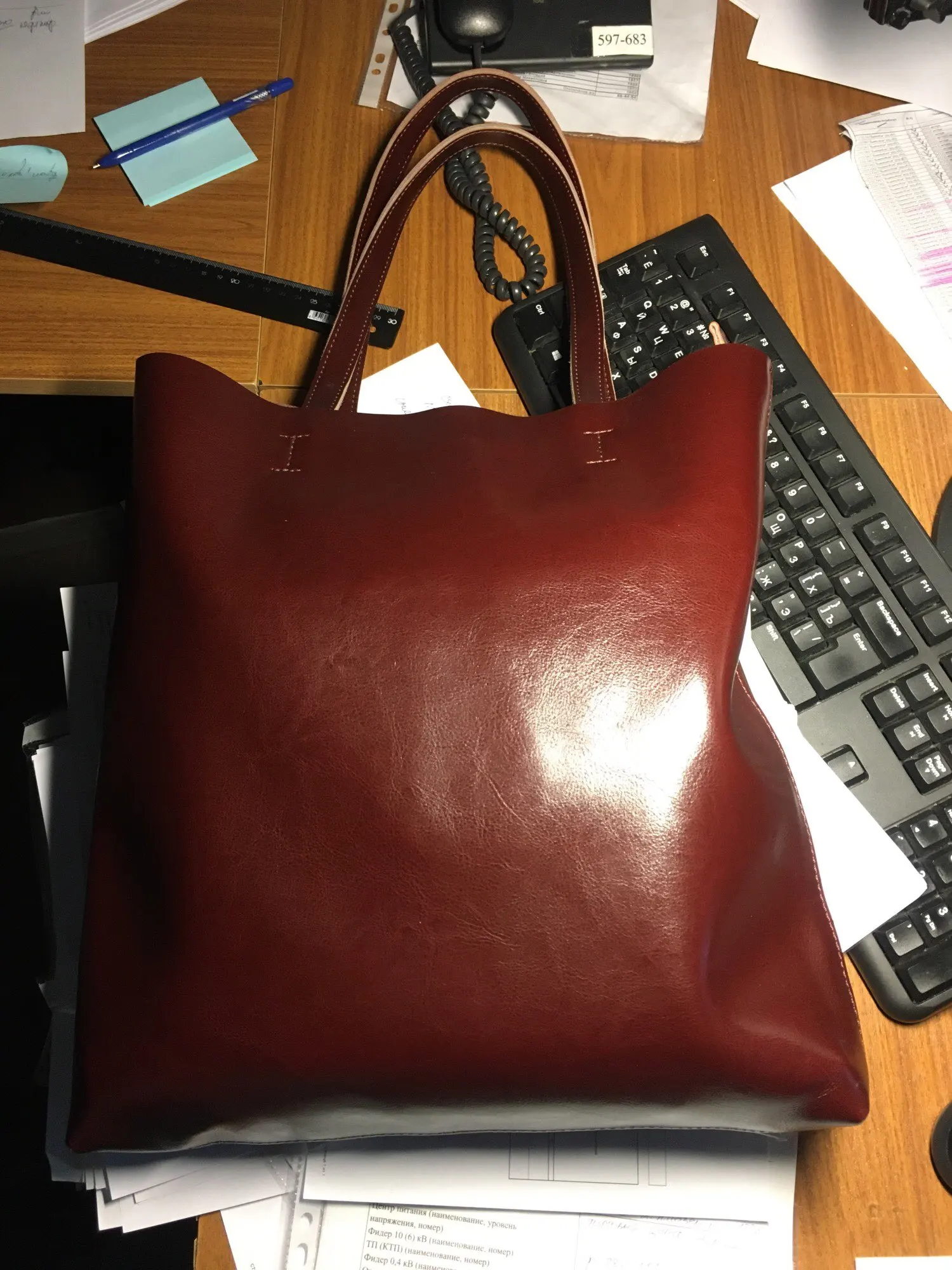 Сумка понравилась, думаю. что это не кожа, но все равно красивая, цвет насыщенный, внутри много кармашков, два под замком. Доставка меньше месяца до Екатеринбурга, упаковано хорошо, посылка отслеживалась. Спасибо большое продавцу!