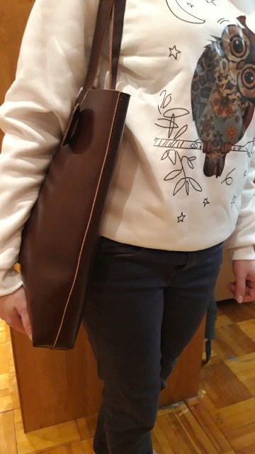 хорошая сумка.Натуральная кожа. Сумка жёсткая. Смотрится плоско. Небольшая глубина.Визуально кажется большой, по факту нет.