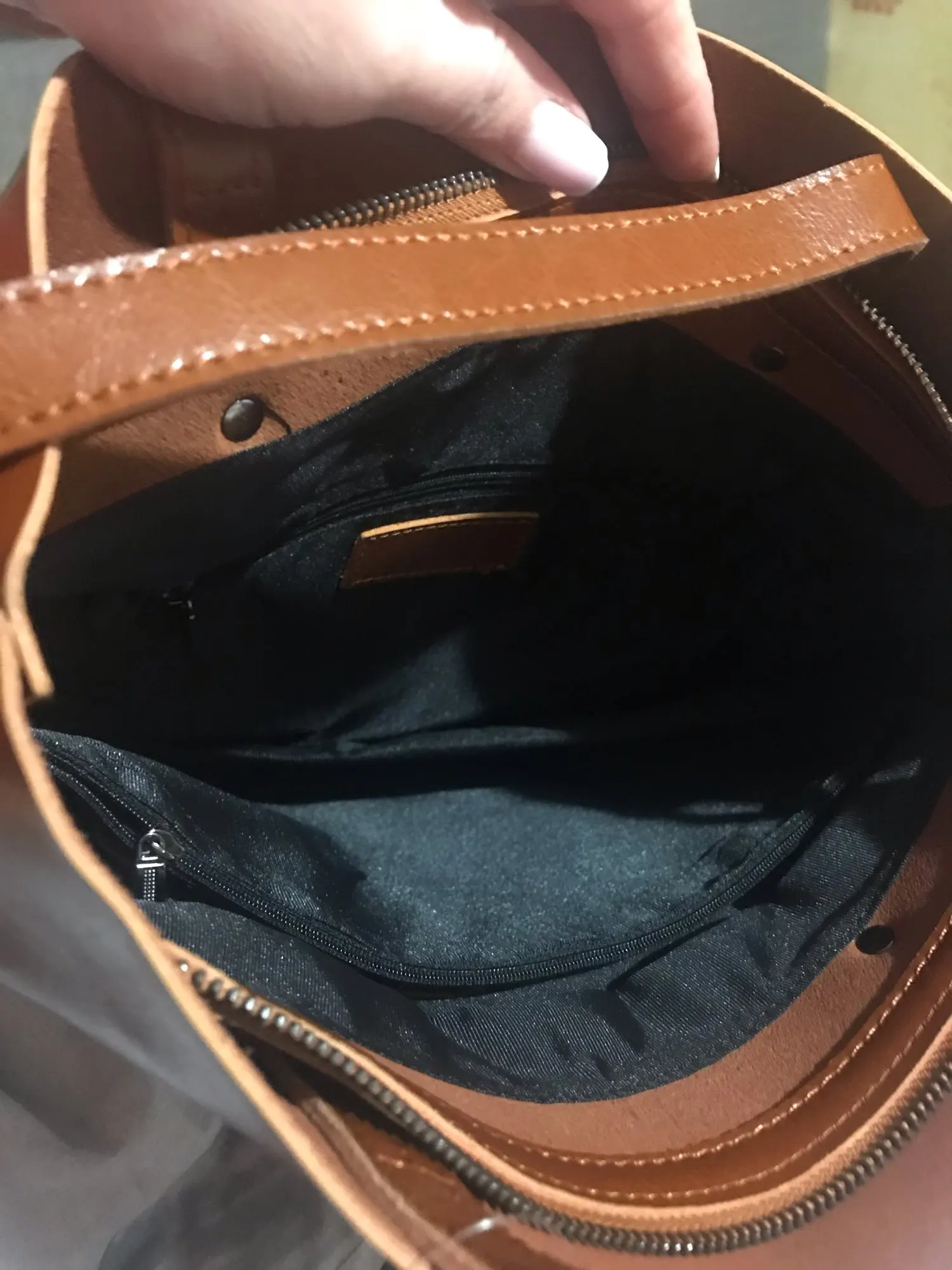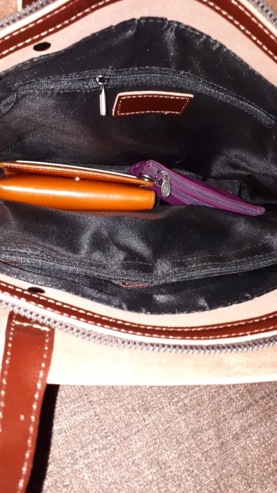 Сумка отличная. Тем более за такую цену. Описание точное. С карманами внутри, есть потайной кармашек на змейке. Сама сумка тоже закрывается на змейку. Очень похоже на кожу.
