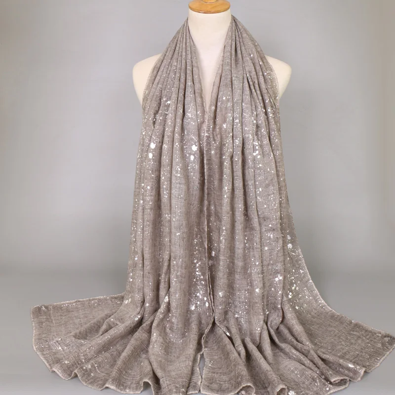 Женская модная однотонная Блестящая Серебристая хлопковая шаль, шарф, зимний шикарный зигзаг, крупные искусственные хиджабы, мусульманский шарф, 2019