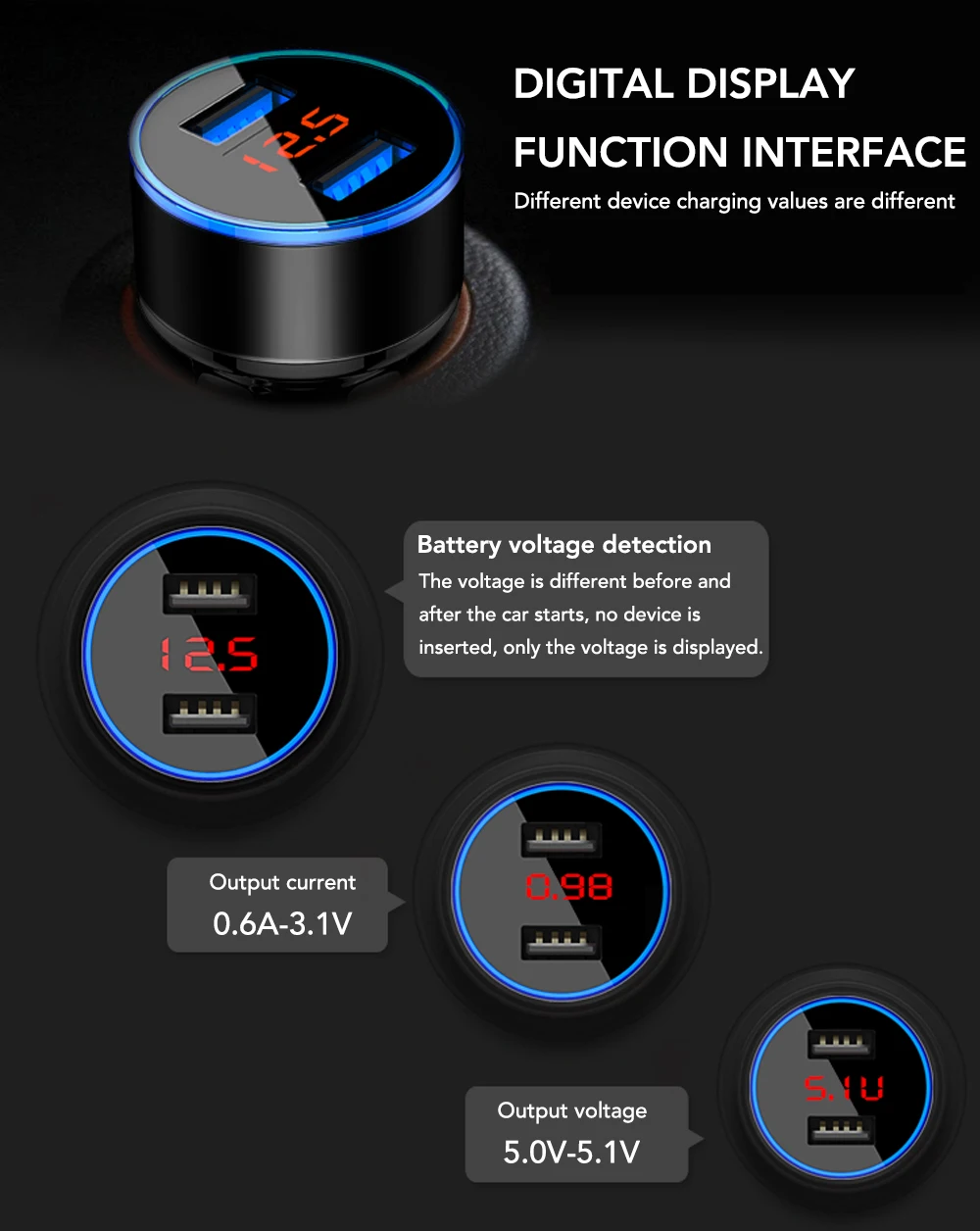 Автомобильное зарядное устройство 2004 А с двумя USB-портами и свет...