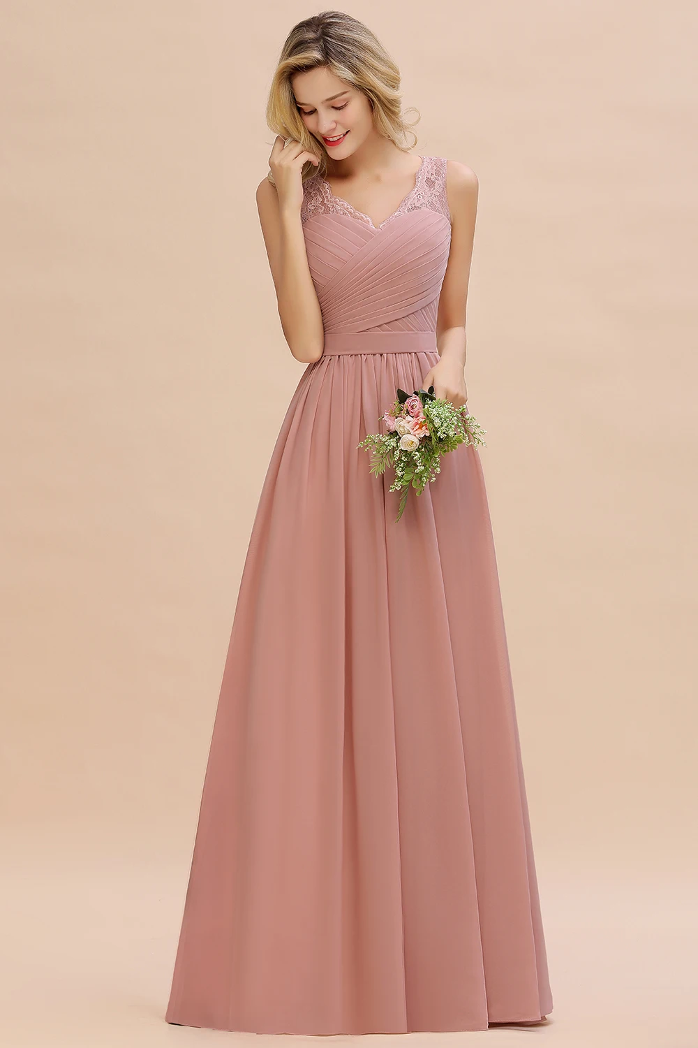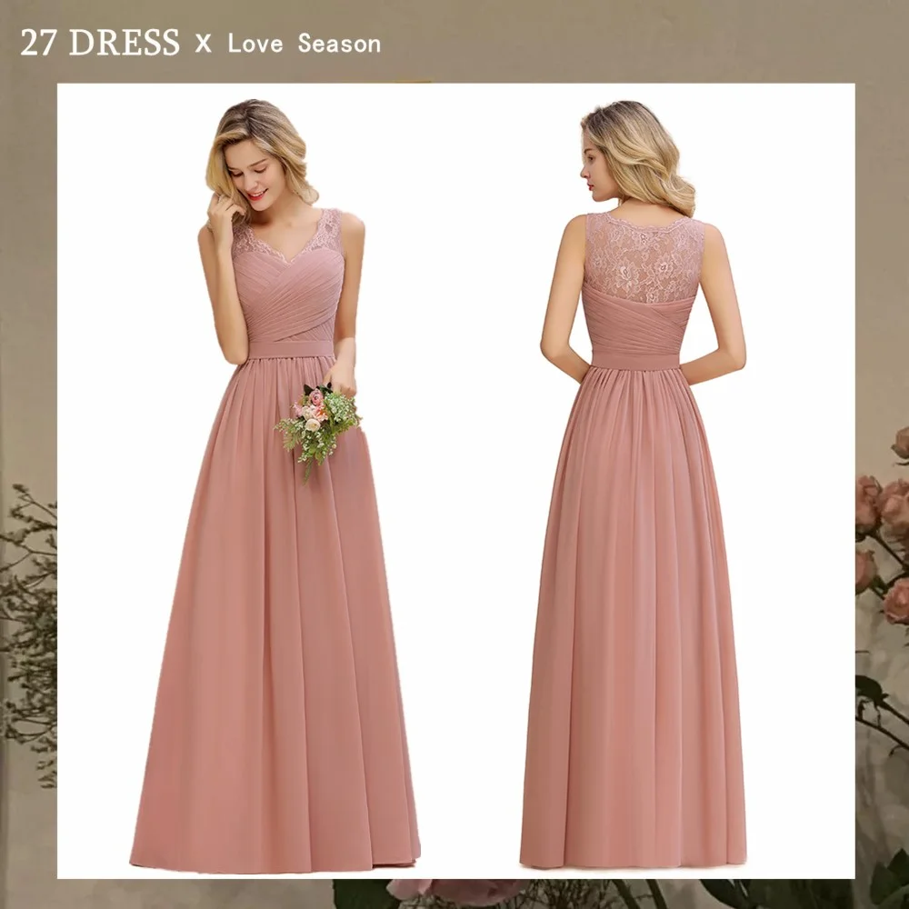 Женское платье подружки невесты, длинное кружевное платье трапециевидной формы с пыльной розой, платье для свадебной вечеринки