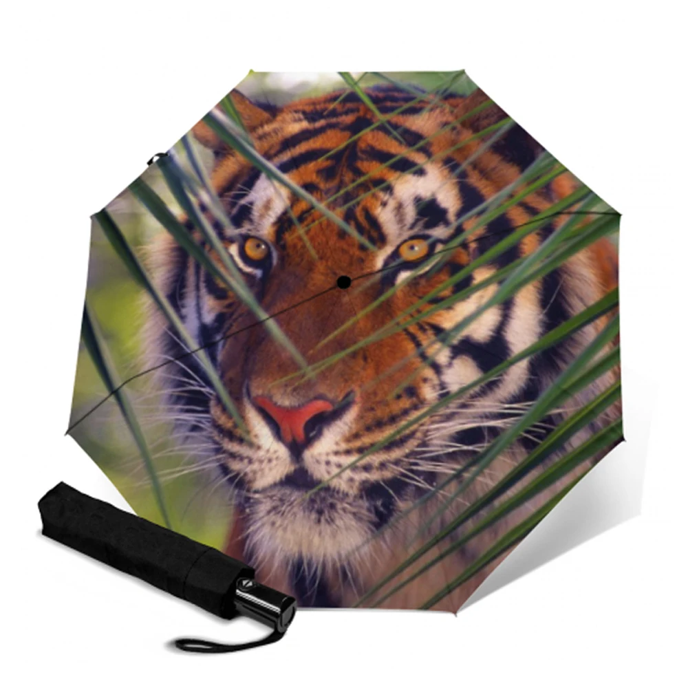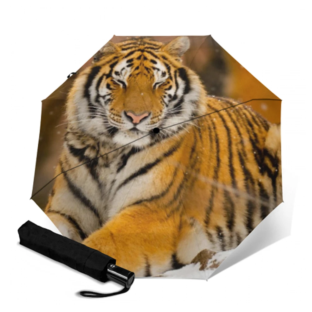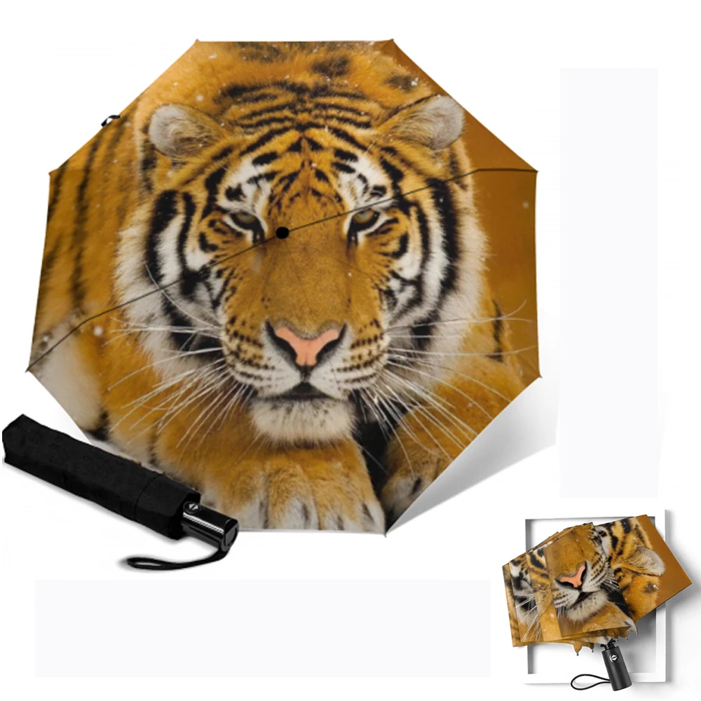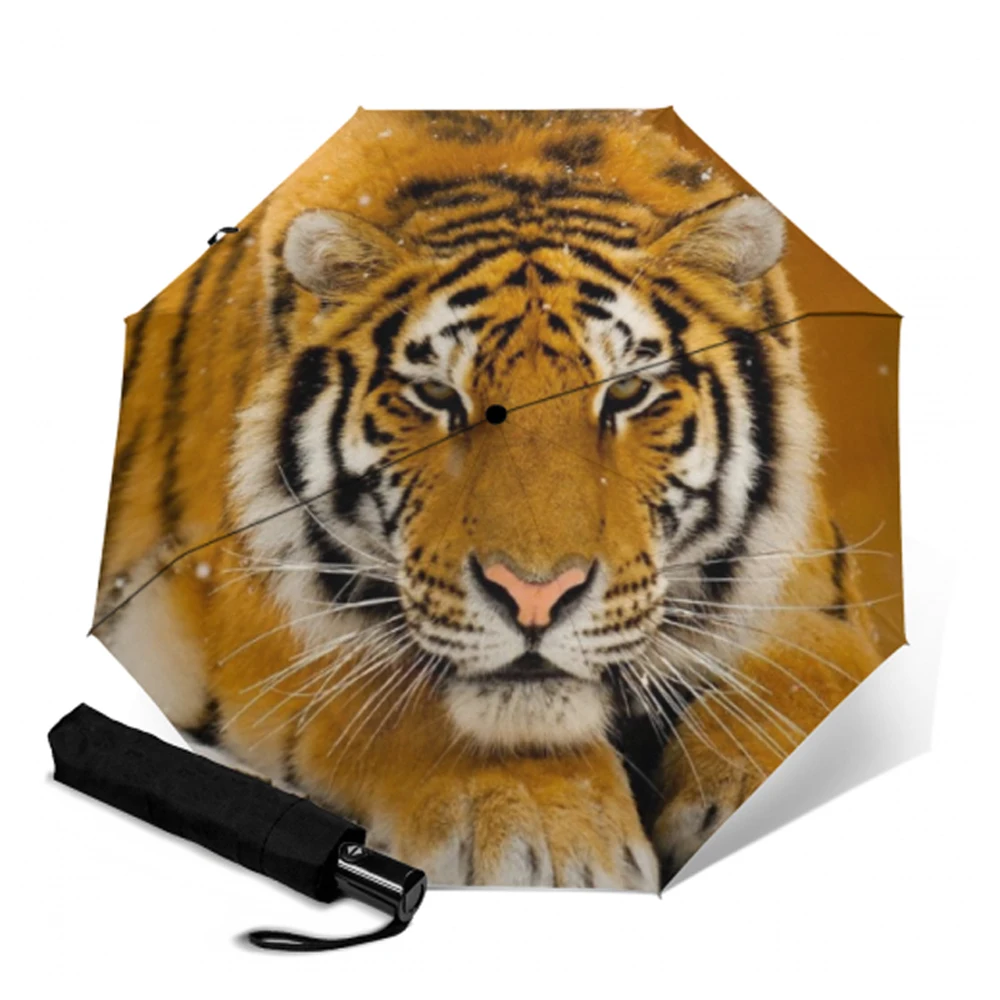 Автоматический складной зонт с тигром для женщин и мужчин, 8-костный антиуф трехскладной Зонт от дождя и солнца для путешествий