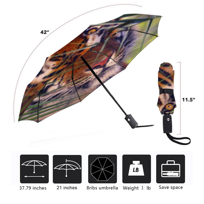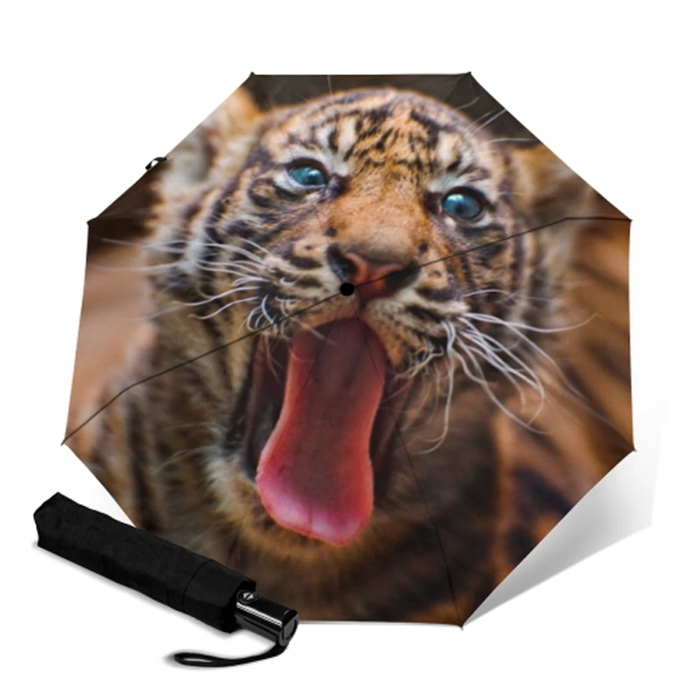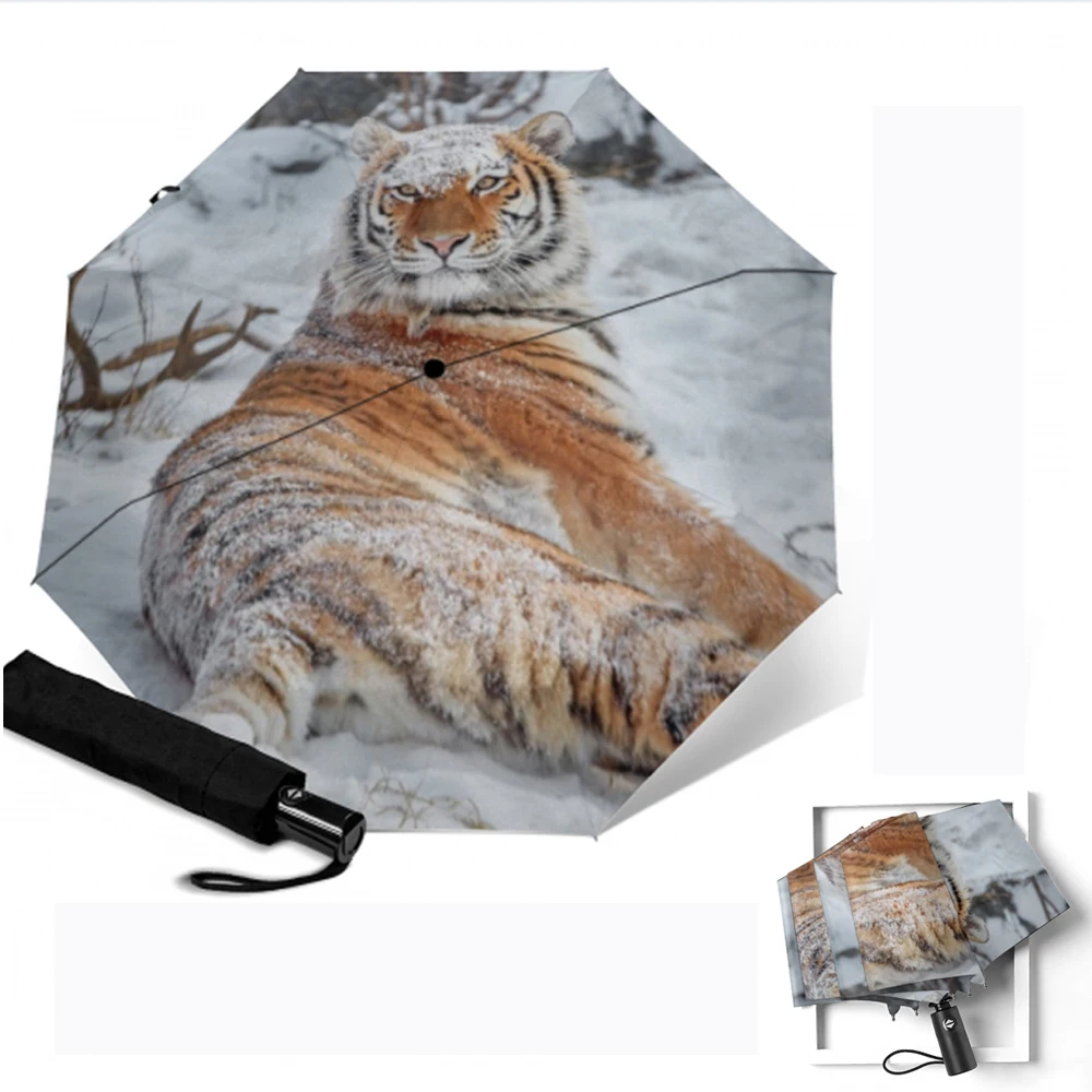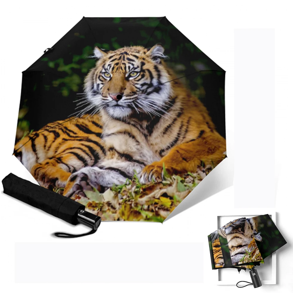 Автоматический складной зонт с тигром для женщин и мужчин, 8-костный антиуф трехскладной Зонт от дождя и солнца для путешествий