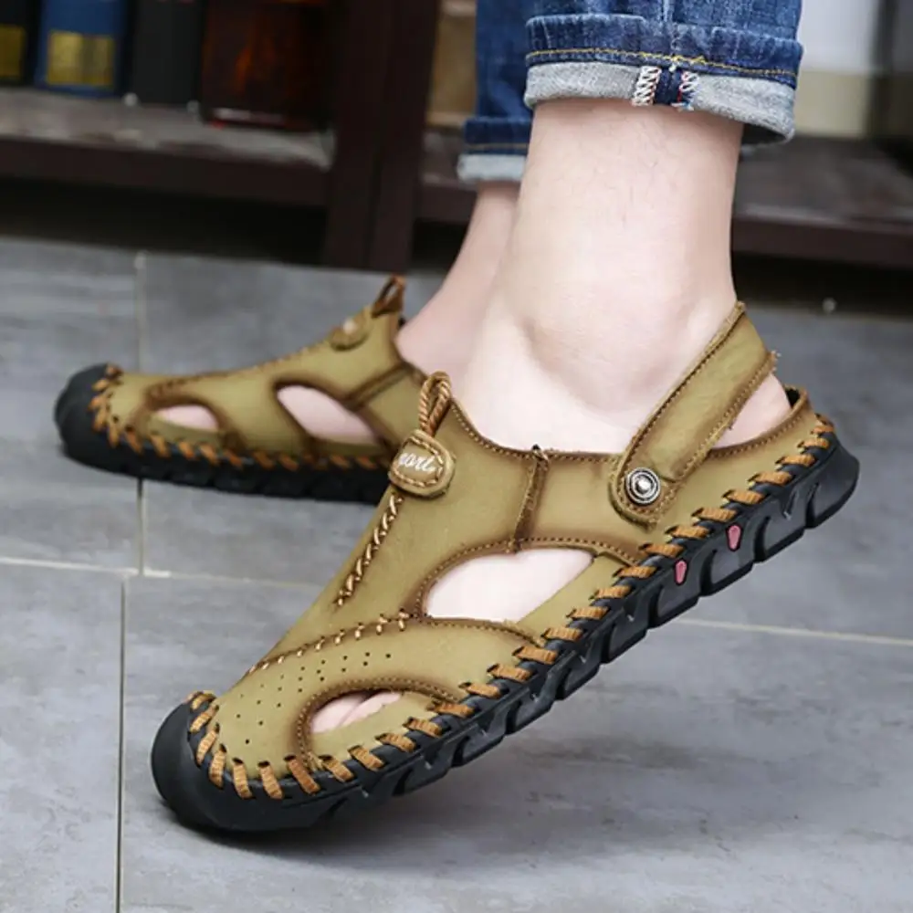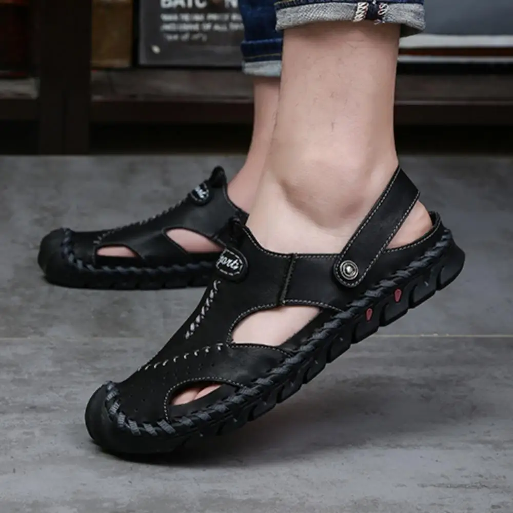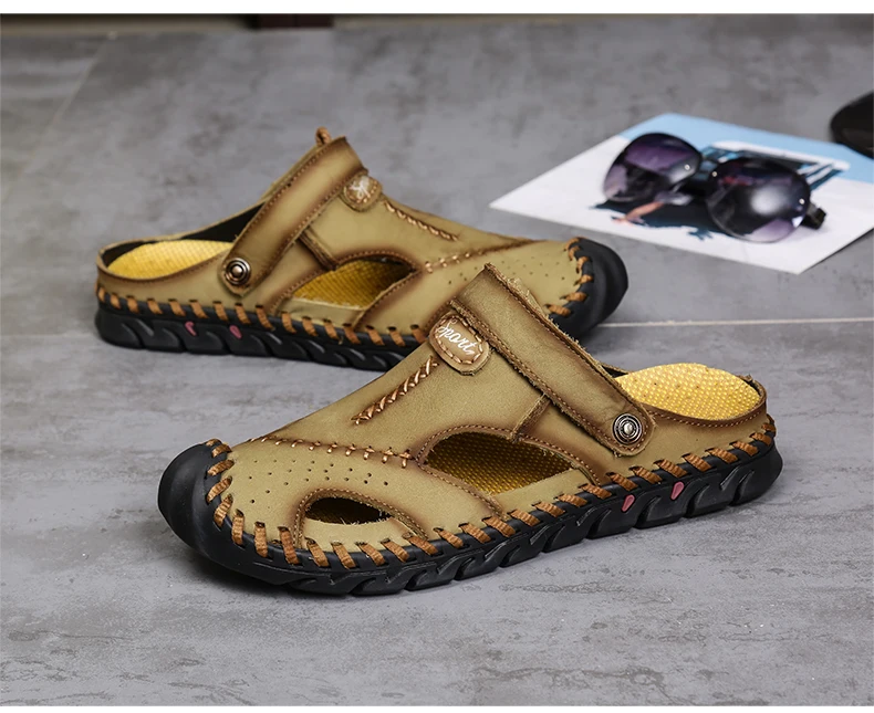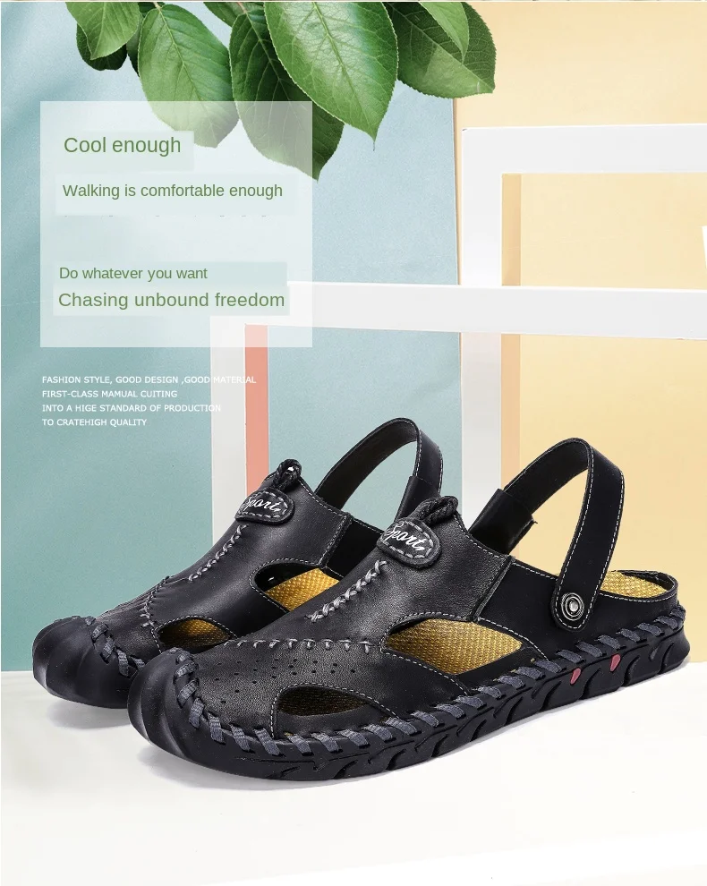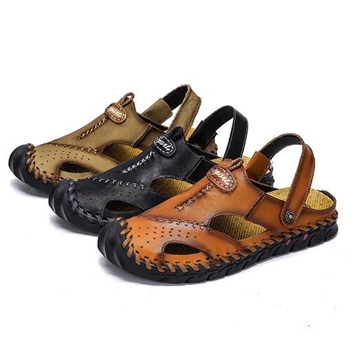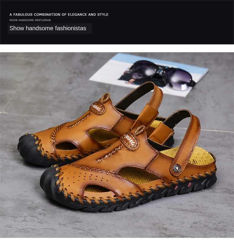 Новинка; Мужские сандалии из мягкой натуральной кожи; Классическая удобная повседневная обувь в римском стиле; Летние пляжные мужские сандалии; Большие размеры 38-48